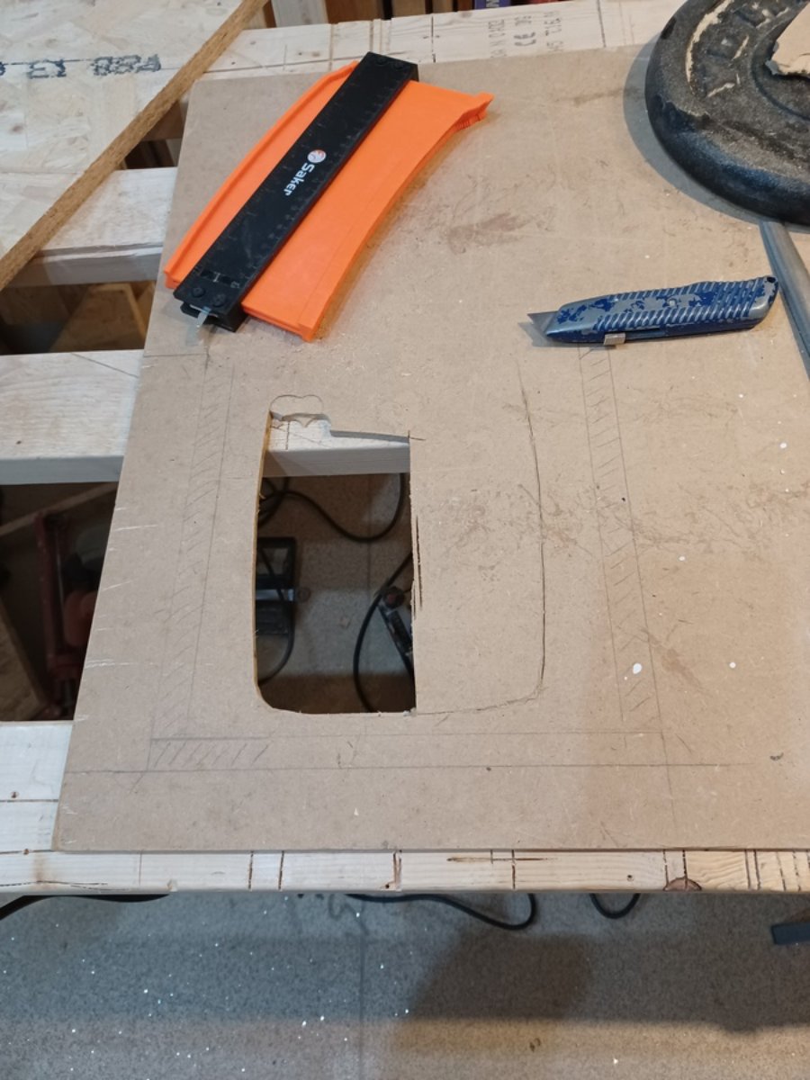 My junior hacksaw skills are poor so I used repeated slices with the stanley knife to cut along the transcribed curve.