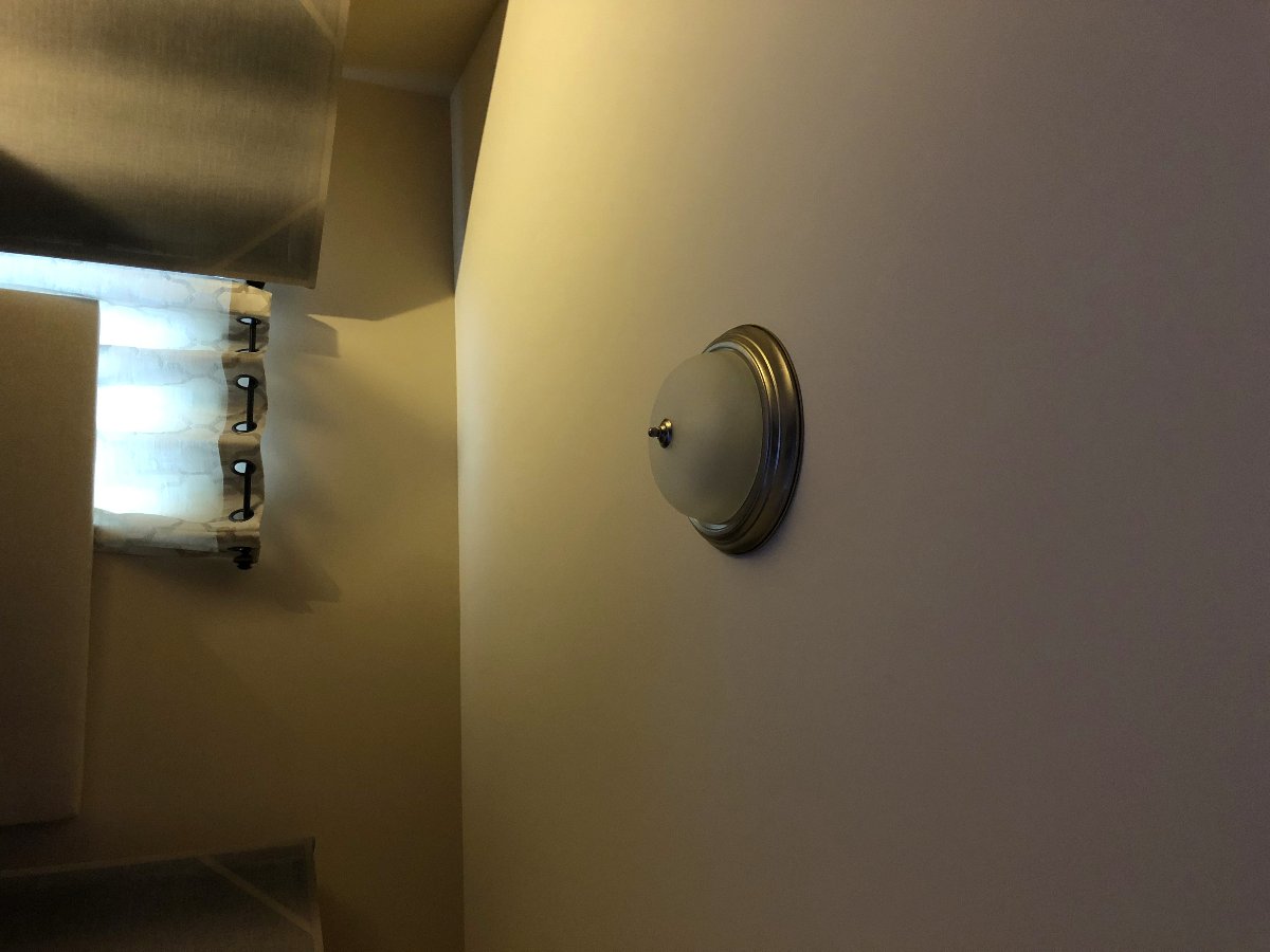 In the center of the ceiling, I have a light fixture. It is one of those standard bedroom lights, and looks to stick down about 6".