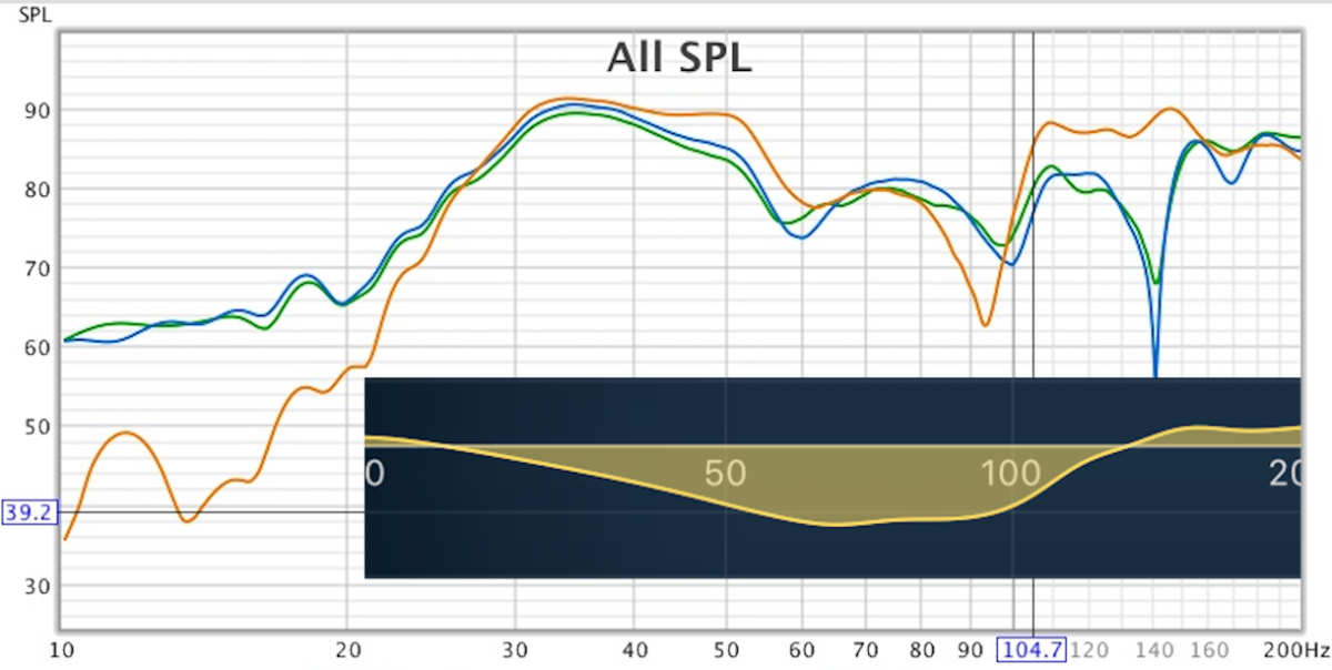 Conclusion - I do need to take care around those all important 50Hz to 100Hz frequencies - I don't know what would be the right move for trying to even out that part of the SPL response. Maybe I will give the tuned traps at 62Hz and 100Hz a go.