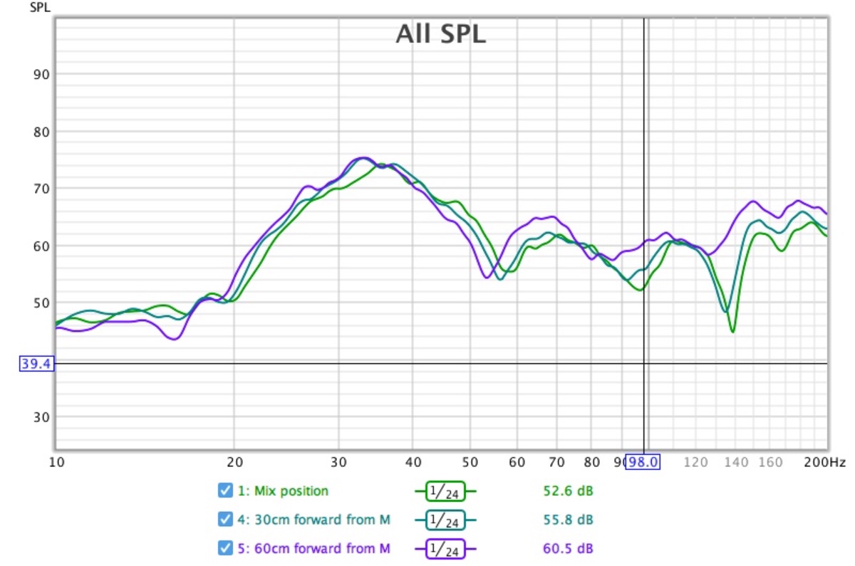 I therefore thought it was worth investigating the impact of listening position/measurement mic position on the low end frequency response.