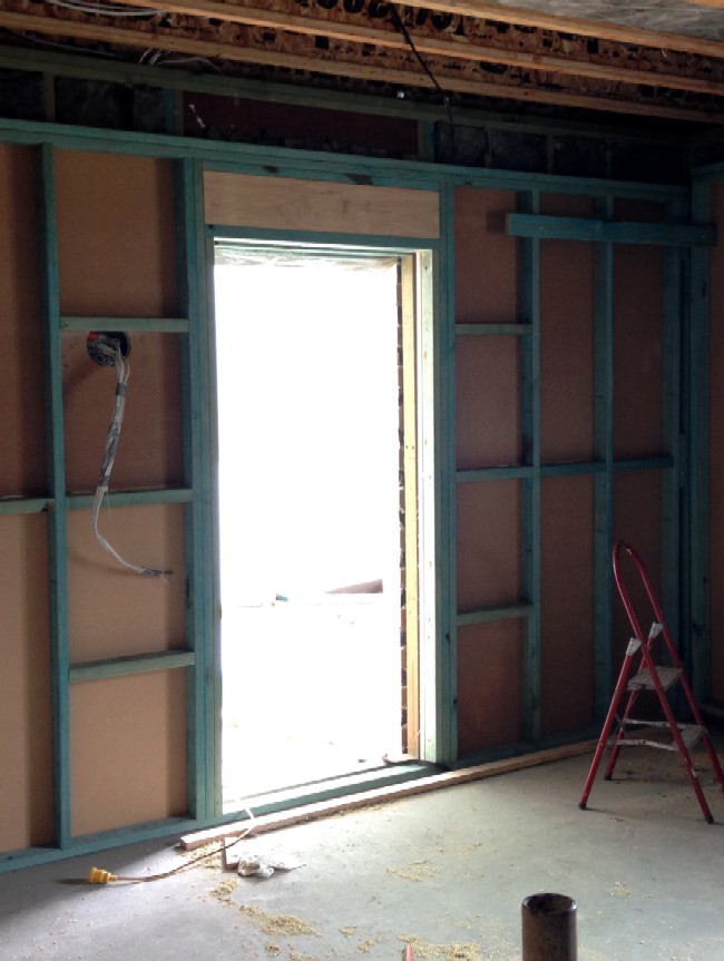 Cons: Expensive and time consuming. The added mass will give little benefit as this is an exterior wall already doing a good job, and pointless next to all that glass. Will reduce width of room at rear by 32mm. Creates first reflection point asymmetry unless 32mm of MDF is added to the door. That would make the door 117mm thick!