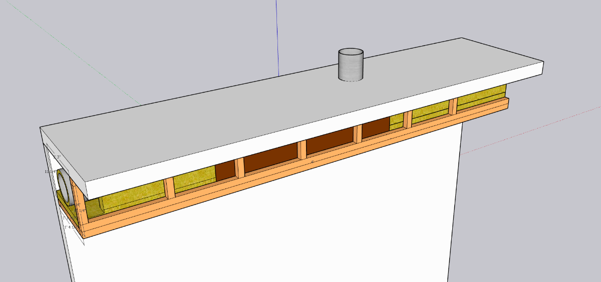 Run the condensate drain inside that wall using a small pvc pipe to carry it from top to bottom and out the exterior. I will then pack out the inner leaf a little bit below the soffit where I will mount the mini split head. Then we will run the line set around the room, inside the soffit, and out the back of the building where the compressor is.