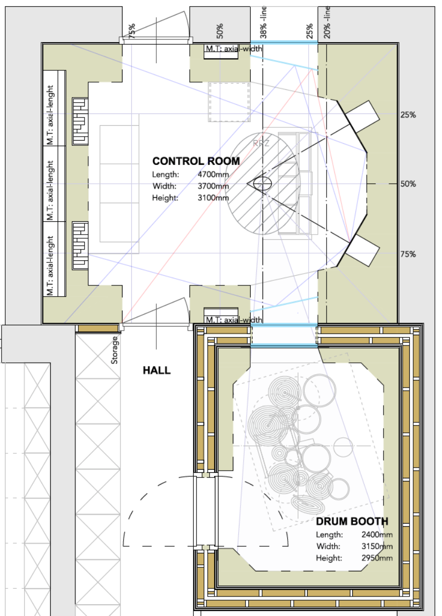 Ideally, if I can make these rooms a little smaller than they are now (yes, I know even smaller) this design should be in ratio with the rest of the home and therefore feasible from that point of view. I'm going to try and find space in this design to further improve on that without trying to compromise on acoustics and practical space. Although I also think that this is already a quite efficiënt floor plan in terms of space, so I'm not sure I will be able to do that.
