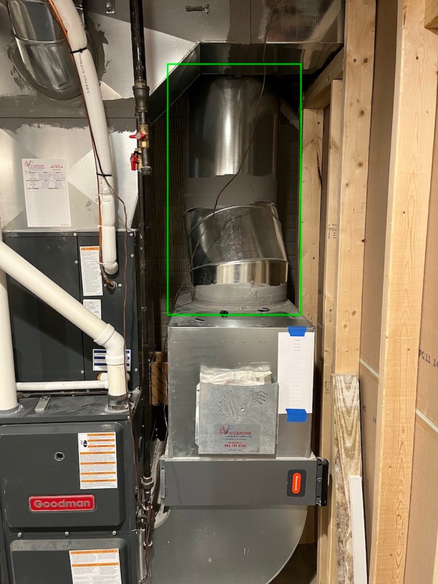 3. The main house HVAC return duct (figure 5-3, below) is also in the same room as the planned studio space, and it opens into the kitchen/family room above the back of the studio space through a 19” x 15” wall vent.