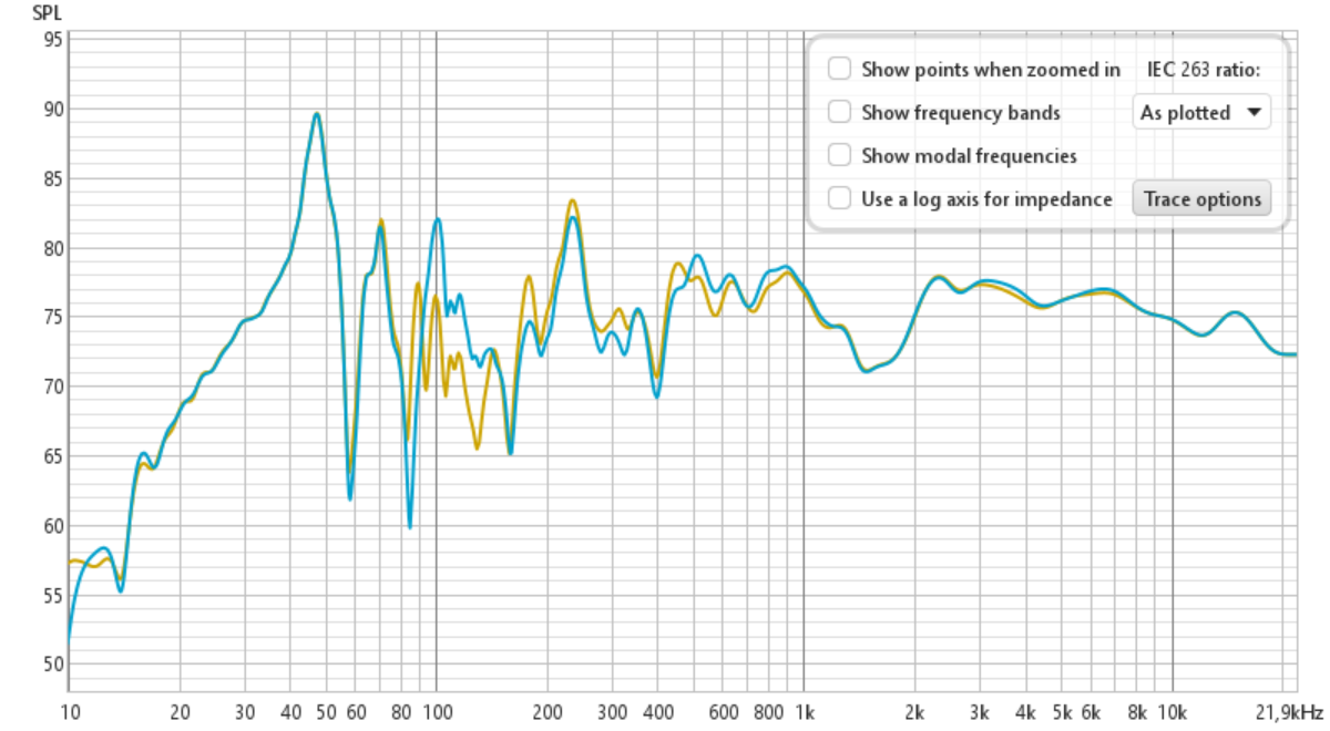 Thank you, gullfo, for the tip with the membrane absorber. I initially built one membrane absorber tuned to 128Hz as a test and placed it in the corresponding location in the room. With this acoustic measure, I could gain around 6dB. The approach with membrane absorbers for this frequency range works very well.