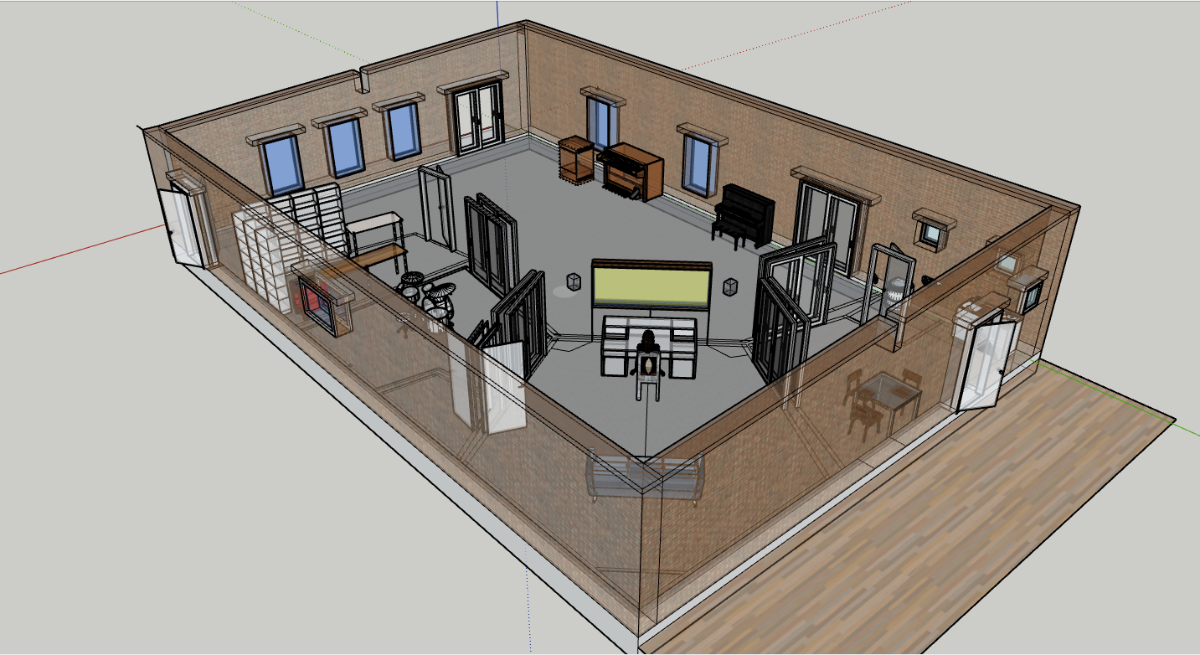 We are looking to use natural building materials - as much is practicably possible – for the main construction and, along with acoustic considerations, will aim to add passive energy elements the design.