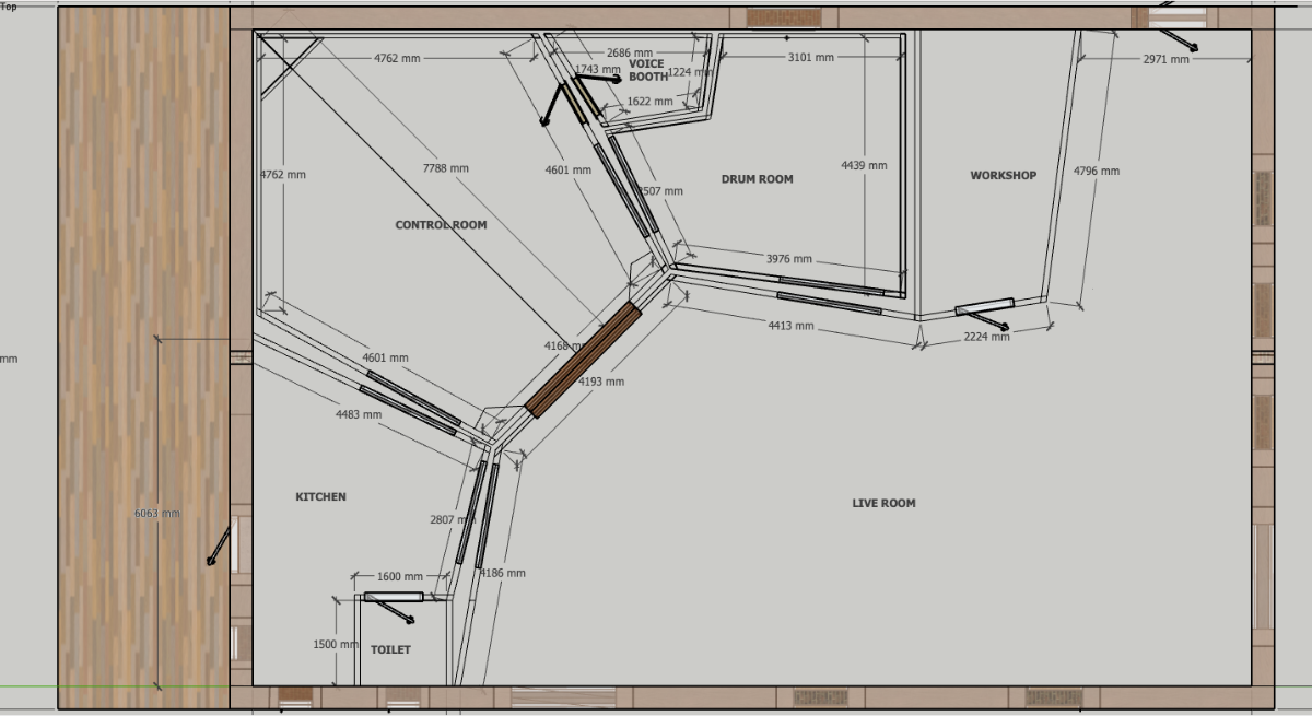 It would be great to achieve sufficient transmission loss with just the walls, windows, doors and roof/celling to not need a second leaf for the main live room, though I’m not sure how realistic that will be.
