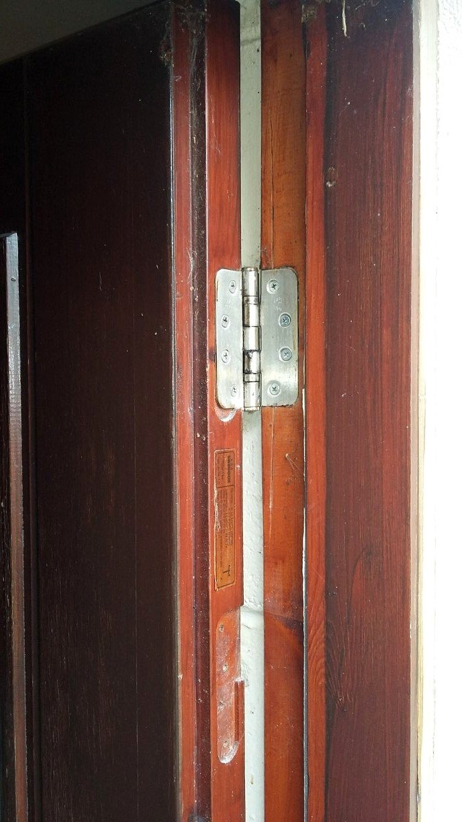 I've not attached the second inner core to the main outer door yet. Reason being that with the extra weight, it would be much harder to balance in position, and to get it level and straight to then mark/install the hinges. Now I have the hinges installed, I will be removing the door, staining it (along with the frame), and attaching the second core to the inside of it (also stained)... this way, I wont have to be checking and tweaking and moving with all the extra weight - should just go up into place! I don't envisage any sagging from the extra weight, purely because the jamb is this massively chunky and hard wood (you'll see from the photos below) - heavy as hell!