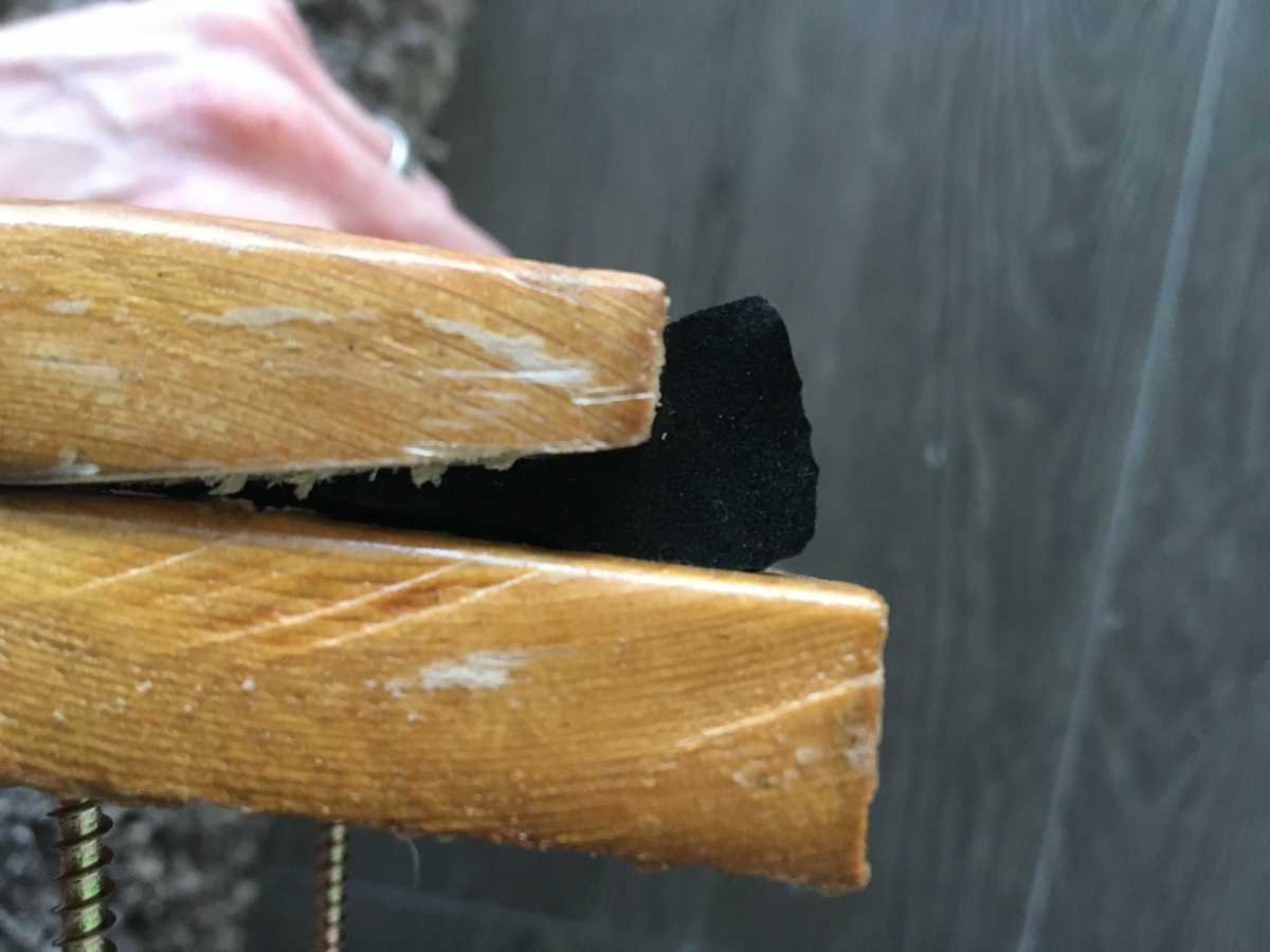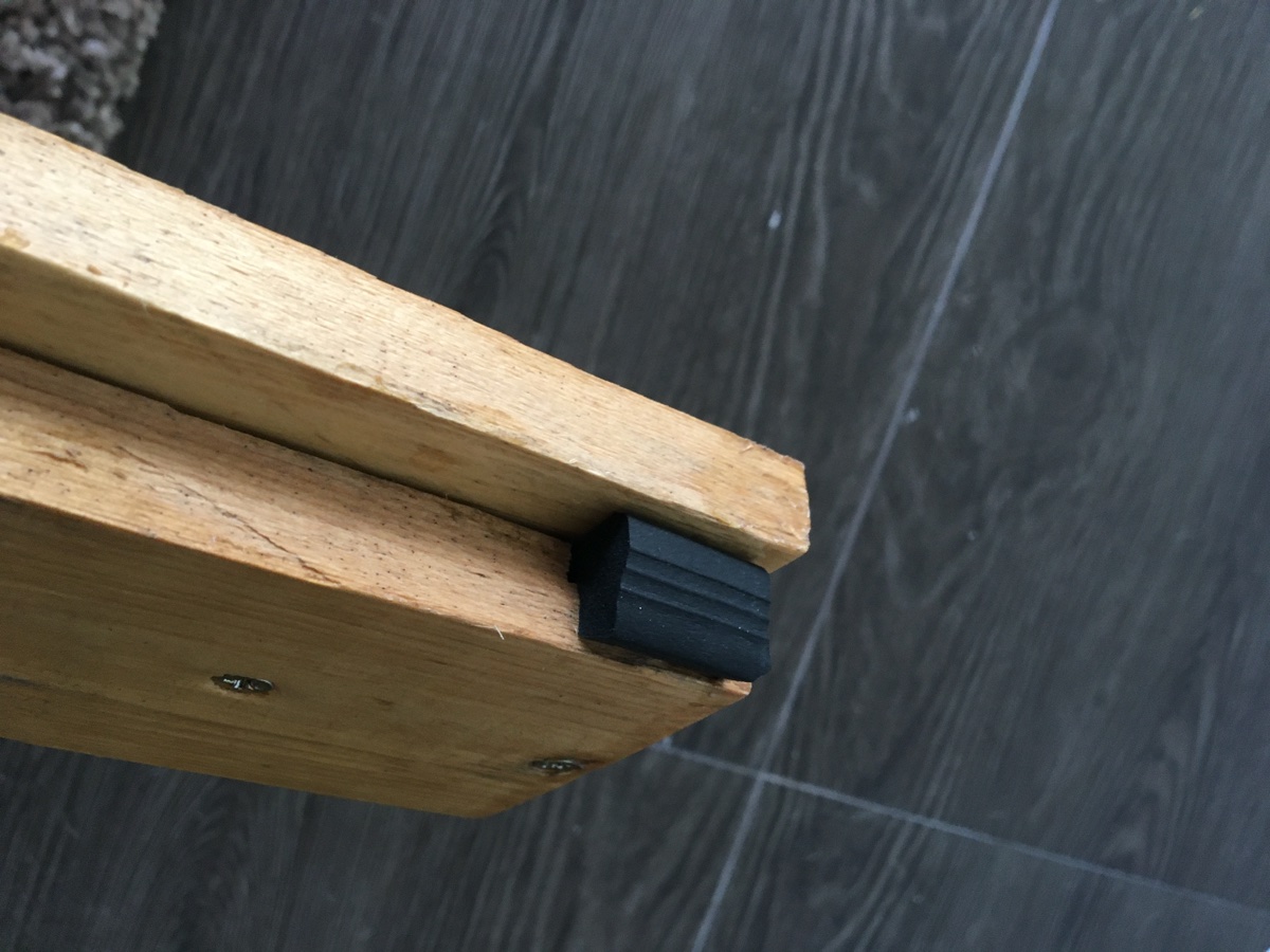 Now, I fashioned a pretend jamb/stop, and wedged the seal inside, attaching it with a few nails to the jamb first, then wedging it between the stop and jamb, and here is how it has come out: