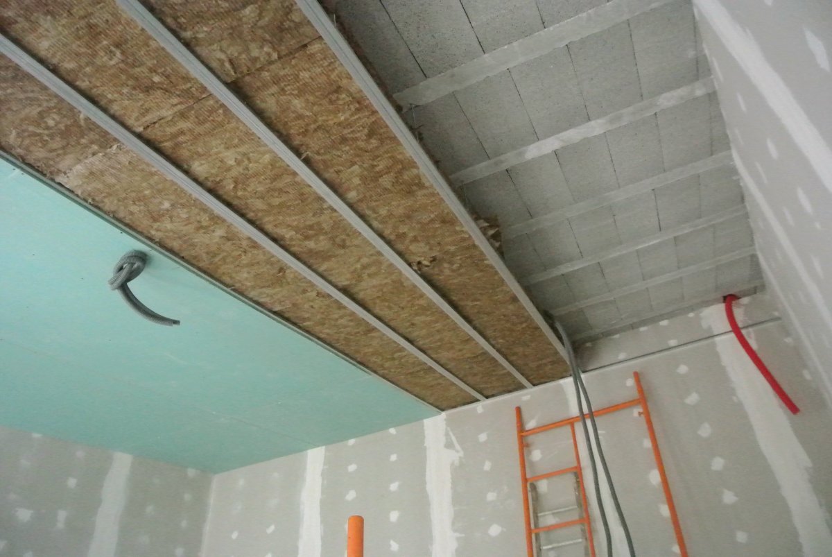 So they managed to get the entrance way ceiling in completely with the rock wool and two layers of plasterboard today.. Good job guys. Said they will not be here before lunch tomorrow.