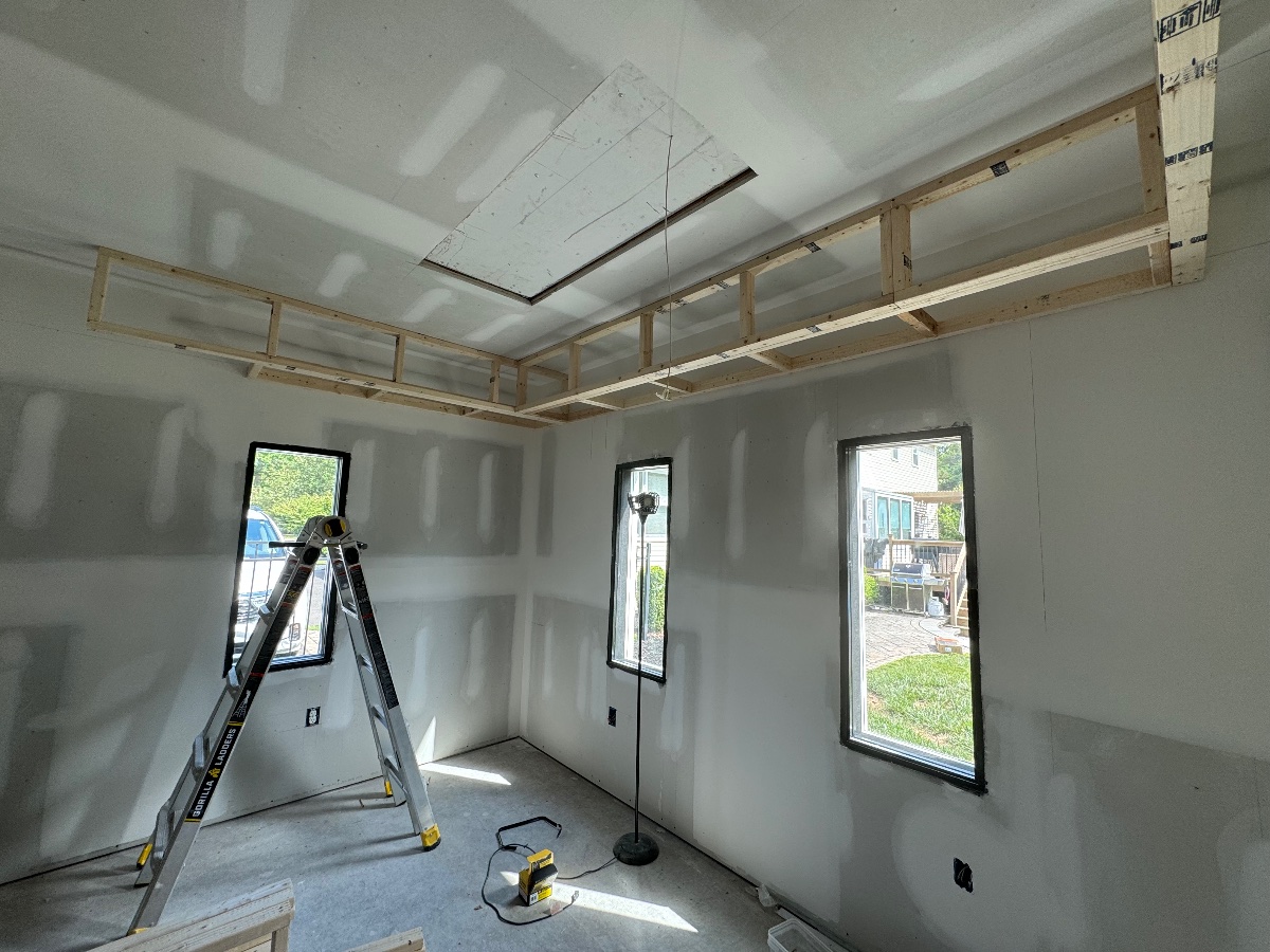 A few more pics. Started framing some room treatments. Still have a long way to go but the soffits are turning out well.