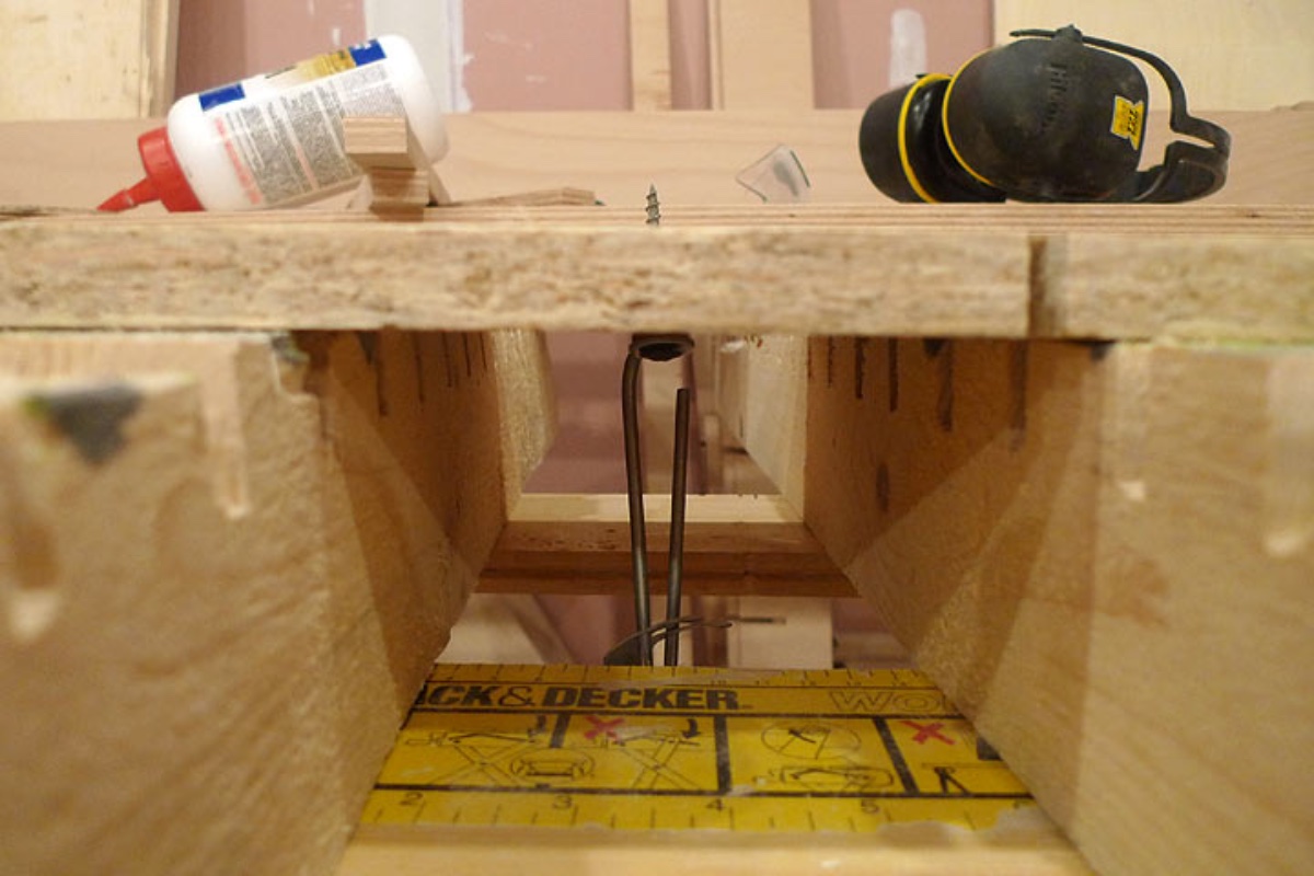 With 15mm of OSB between the plywood and the floor, the blade on my circular saw protrudes apprimately half way, enough to ensure the plywood gets cut and little enough to ensure the blade never risks making contact with the floor. I like sawing boards on the floor as they are stable and level on the floor. Pallets were great supports, as I demonstrated when I cut MDF for my silencer boxes.