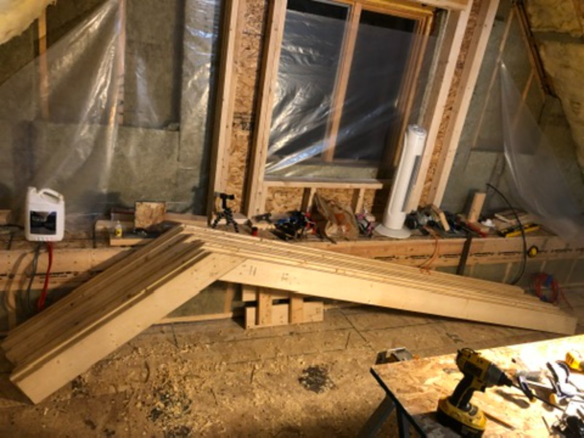 Things are progressing well but I've had to take some time away to prep for the winter coming and make some fire wood :). Great to be spending some time outdoors and enjoy nature. I've been meaning to post another update with a series of pictures, so stay tuned on that. Once I complete a bit more work I'll make sure to post but in short, I've started framing the support walls for the ceiling, and am currently building custom ceiling trusses to support my inside-out modules configuration. It's certainly interesting having to dealing with slopped walls/ceilings. Custom custom custom custom. lol