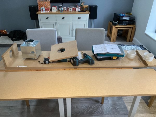 I took the time to test the fan worked before storing this all for use in a few weeks time. The inside leaf silencers will have a larger area and larger outlets in order to slow the air down.