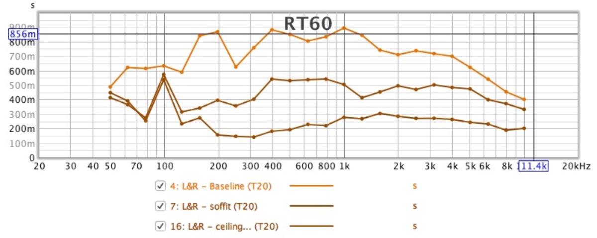 Your soffits have done an excellent job, look at the reduction in decay time in the spectrograms;