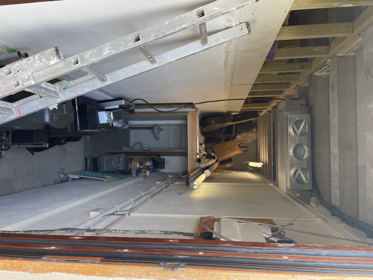 Next is some tweaking of the position as the sleeves are not optimal in the holes in the ceiling. I want to put the sleeves in and concrete around them with a plastic covered shutter so I can ensure a caulk gap around the sleeves.