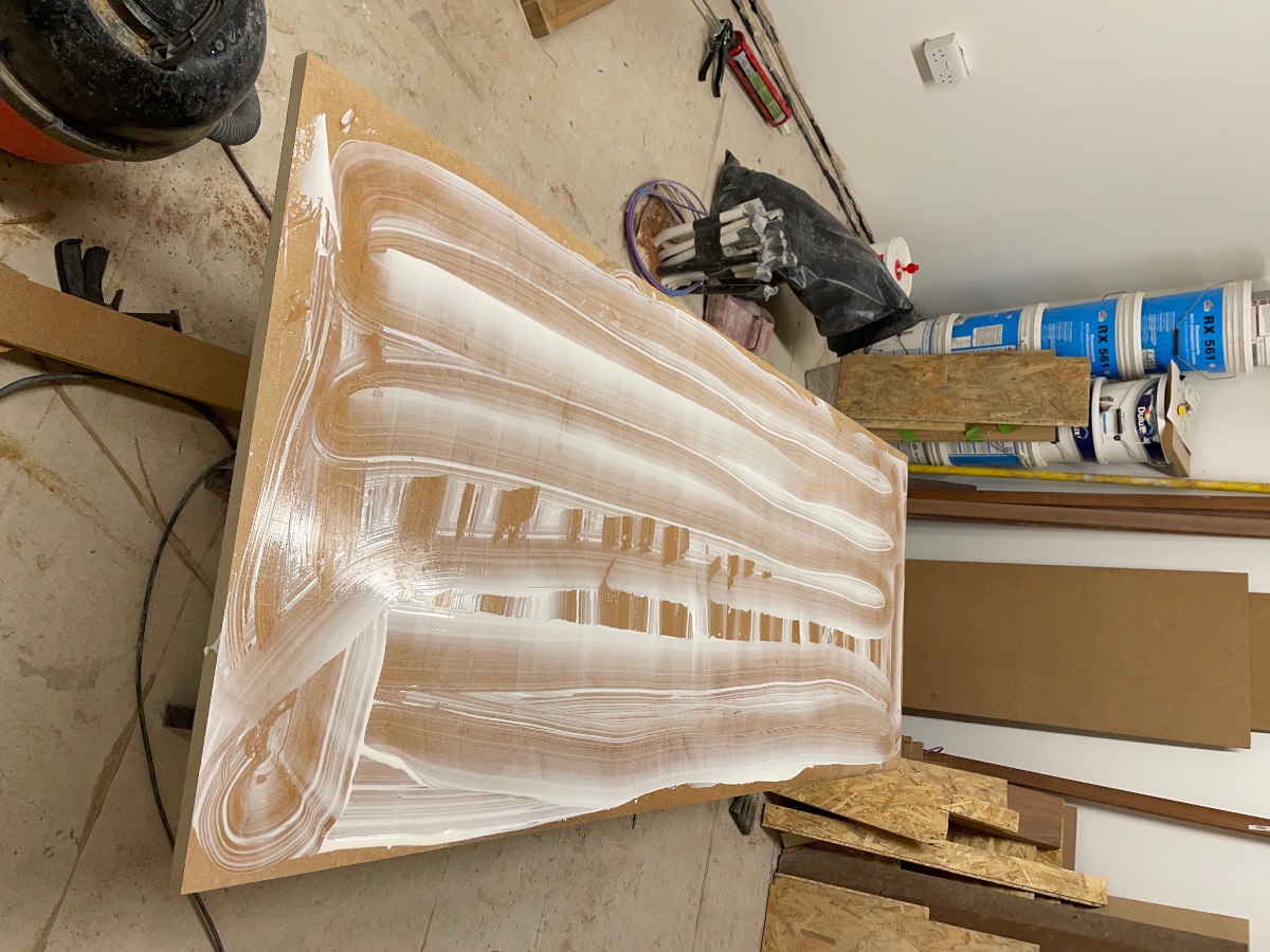 Studio door swinging on 8 hinges…maybe excessive… 2 drop seals and 3 stages of door stopping… 54mm door with 18+15mm mdf then 18+18mm mdf… door closer closes the door nicely but the door itself is actually a bit bowed… will see how it seals but may need a sort of latch on the inside face to force the top against the seals… the door was slightly bowed when we made it 2 yrs ago but it had been laid flat for a while and I thought that would do it.