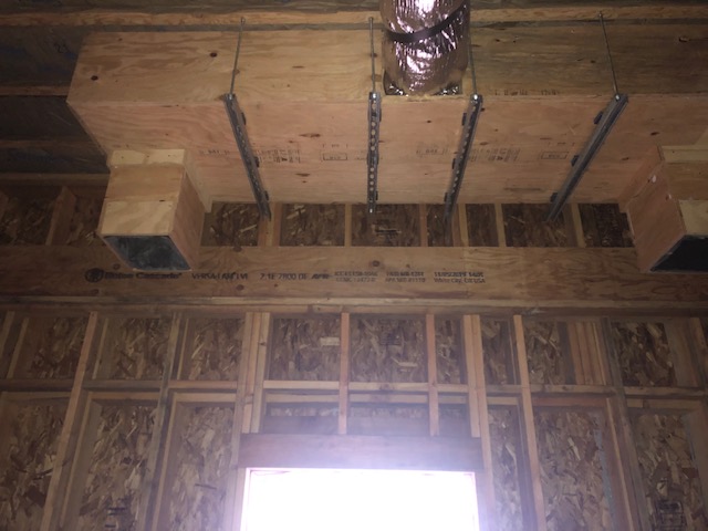 It is the latter. I hired you to design the HVAC only. I did share your sketch-up design with the draftswoman and GC, but those details were not included in the approved plans. Plus you didn't give dimensions for joists and you had inside-out walls which was not in my plan and some other details that you were going to clean up but never did due to saving time and just being busy and it wasn't what I was paying you for. I totally appreciated having those details and if I were to do it again, I would have paid you to design the whole studio with every detail spelled out. The other thing is the GC is not doing the HVAC. I have hired a HVAC company to do that. That company has all your sketch-up jpgs and they will follow your plan EXACTLY, which I am going to emphasize LOUDLY! Of course everything needs to be timed correctly. That said, the GC did screw up the timing. Instead of doing 24"OC and then constructing the roof, and then bringing in the HVAC, he did 16"OC, then put the first layer of OSB on top of the joists, and now the roof. Because it is winter and it's raining, they wanted to get the roof up but for some reason did the OSB first I believe so they could stand on it while constructing the roof?He's also not reading the plans correctly! either that or the plans he has are not taken from the ones I did for you