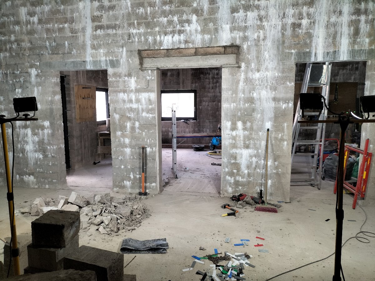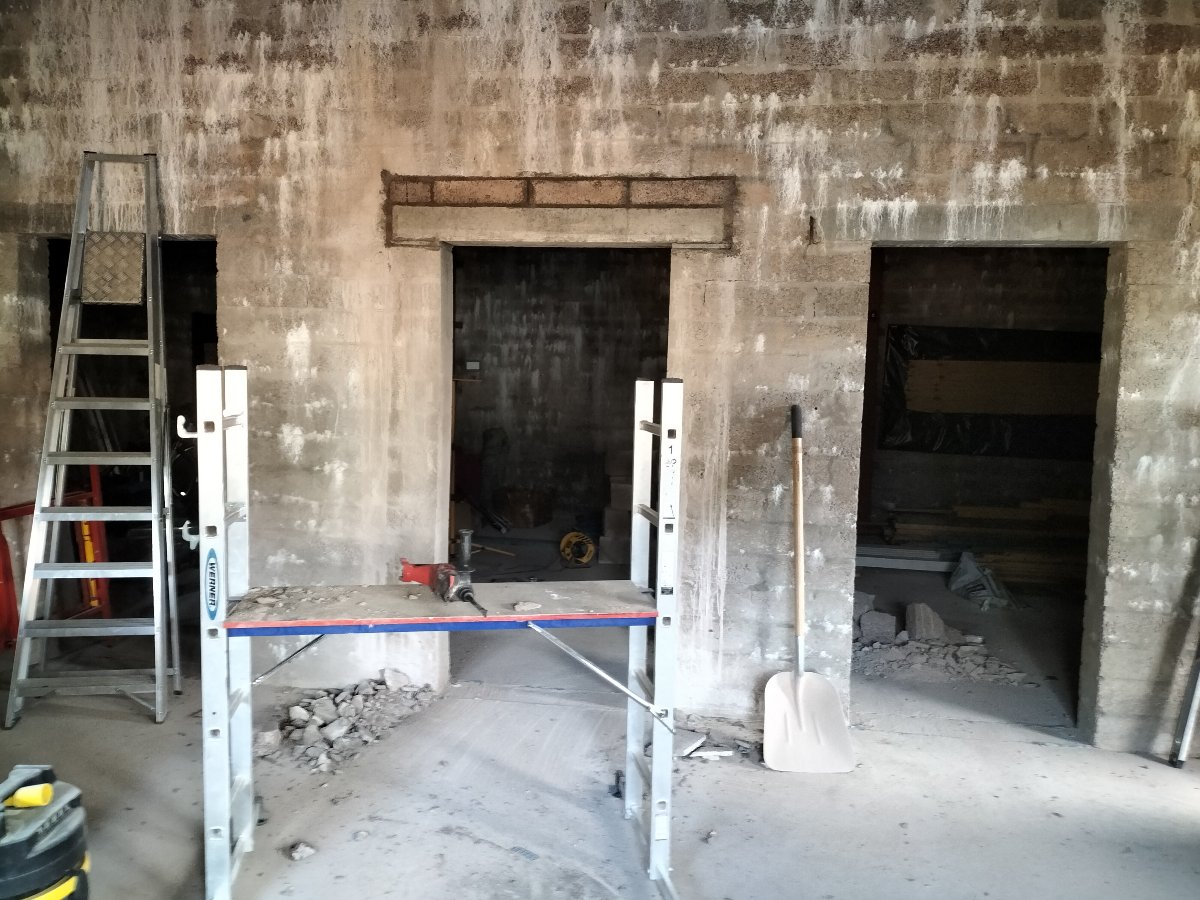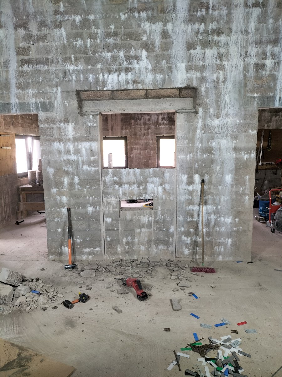 We had two options. Either leave it where it was and treat the hell out of the door itself OR brick up the old door opening and cut a new one. I decided to get someone to cut a door sized opening in the correct place and drill four 300mm holes through the concrete for the air intake and exhaust ducts. My son and I inserted two concrete lintels and I carefully removed all the bricks to reuse as many as possible bricking up the old door. I haven’t gotten round to bricking up the old door yet as the weather has been too good but it is high on the priority list for the coming weeks.