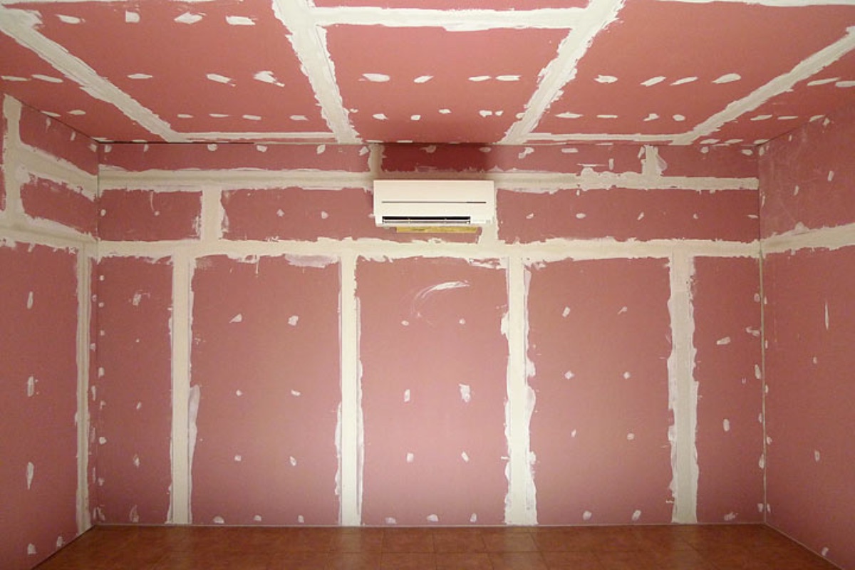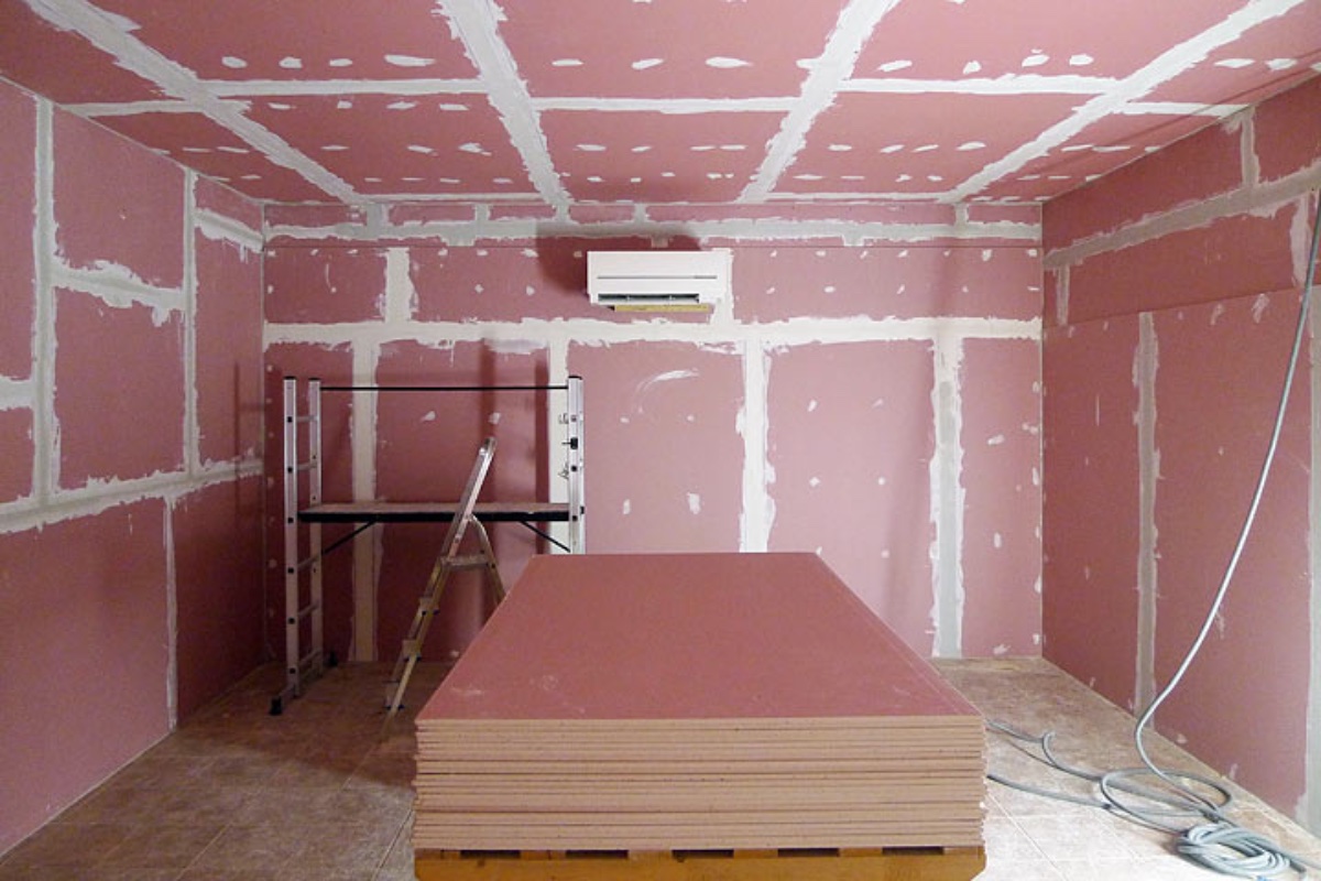 Then the second layer of plasterboard. Both plasterboard layers were 15mm each.