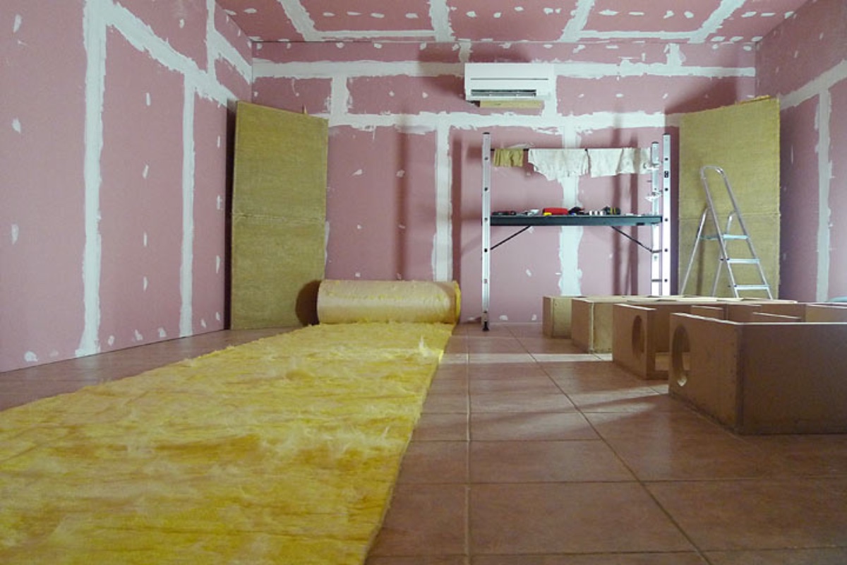 In the last photo you can see our old superchunk traps. The room has so much reverb - which confirms that much less sound is escaping - that I put the traps in place so that listening to music while we worked was not the painful experience it would have been without them.