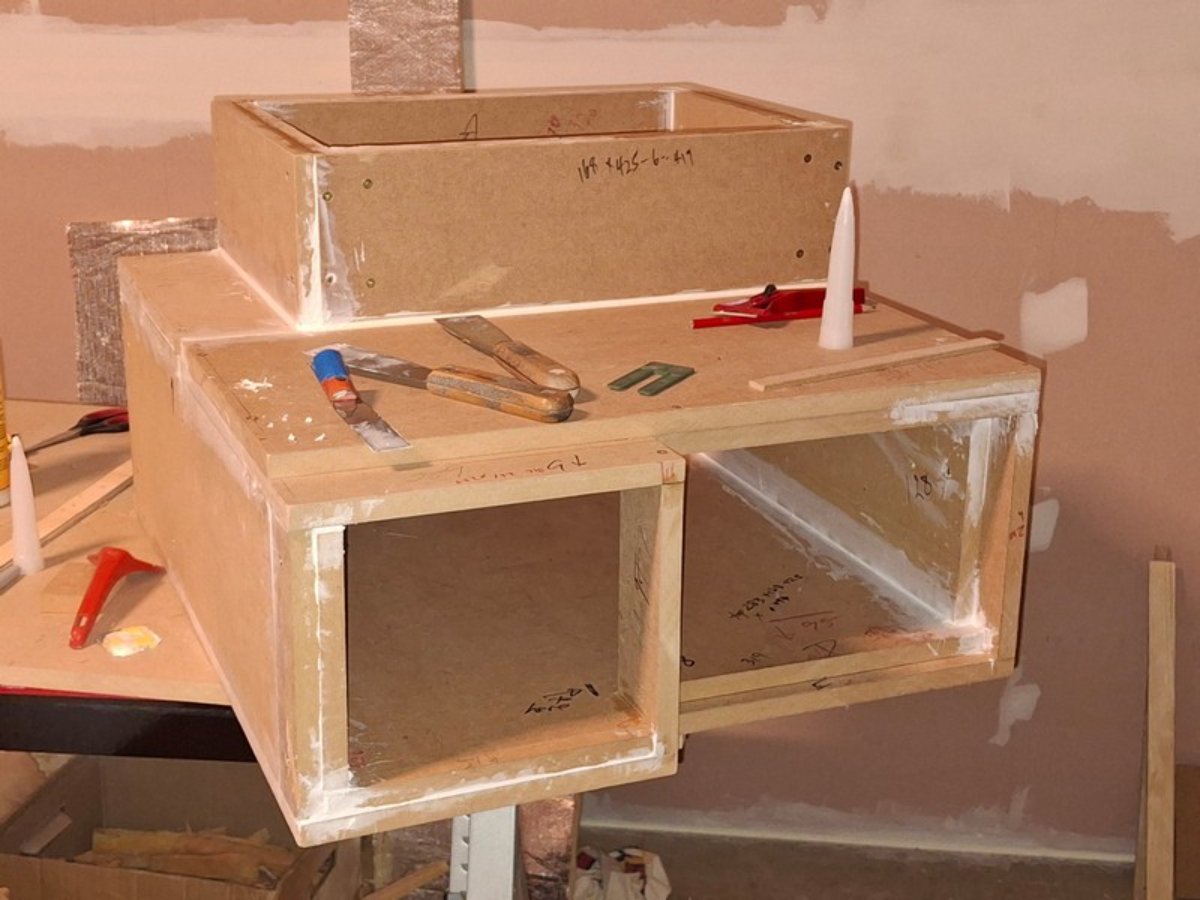 Various shots of the mounting of the inner silencer for the LIVE ROOM;