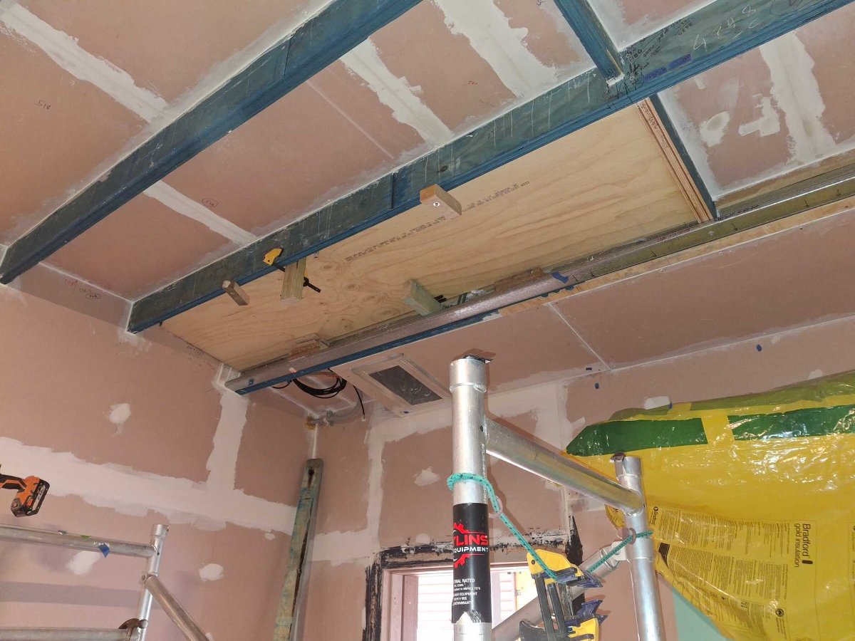 I had a conversation mid 2024 with my engineer about the introducing plenums to slow air speed further. This conversation was prompted by the increase in the load on the ceiling joists. The outcome was that I required some extra strengthening on the joists bearing part of that load. (The frame for the silencers/plenums runs from the wall to the first joist)