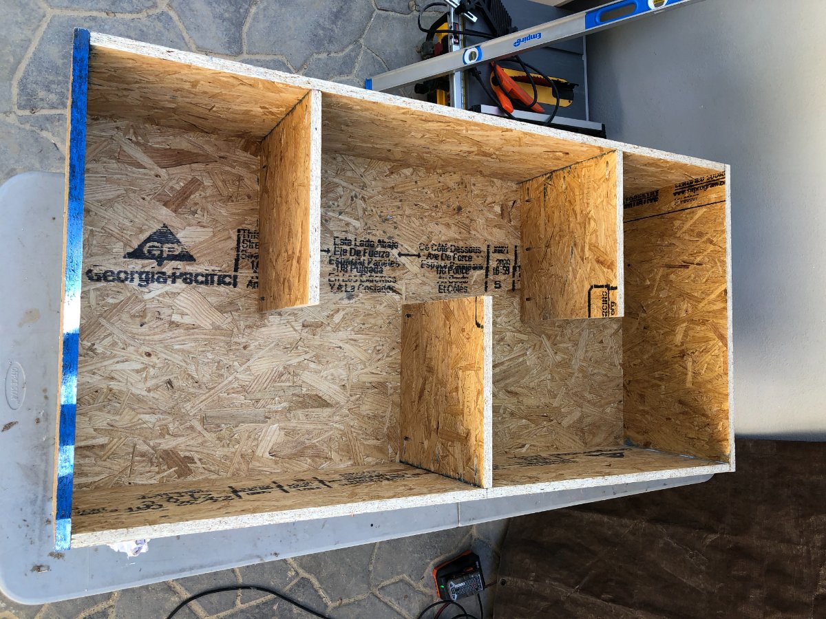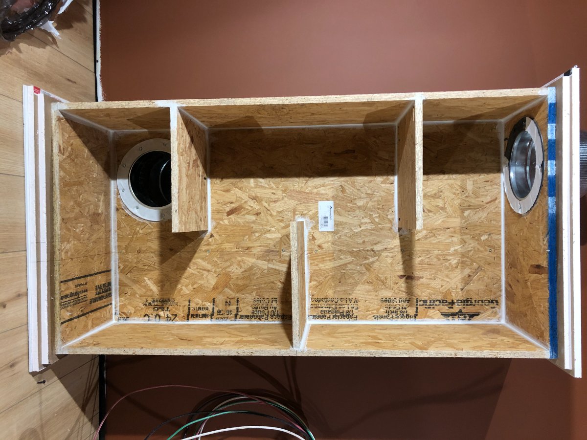 Next up is the construction and installation of my silencer boxes. I designed these a few months ago, and I knew the dimensions were "big", but I didn't realize HOW big until I actually constructed the damn things. They're HUGE! But that's the point, right? I had so much OSB left over, that I used those instead of MDF. Since these are going inside the room, and being mounted on the floor, i decided to make the extremely mass loaded. So they will be 3 layers, OSB>green glue>drywall>green glue>drywall... the same as my walls.