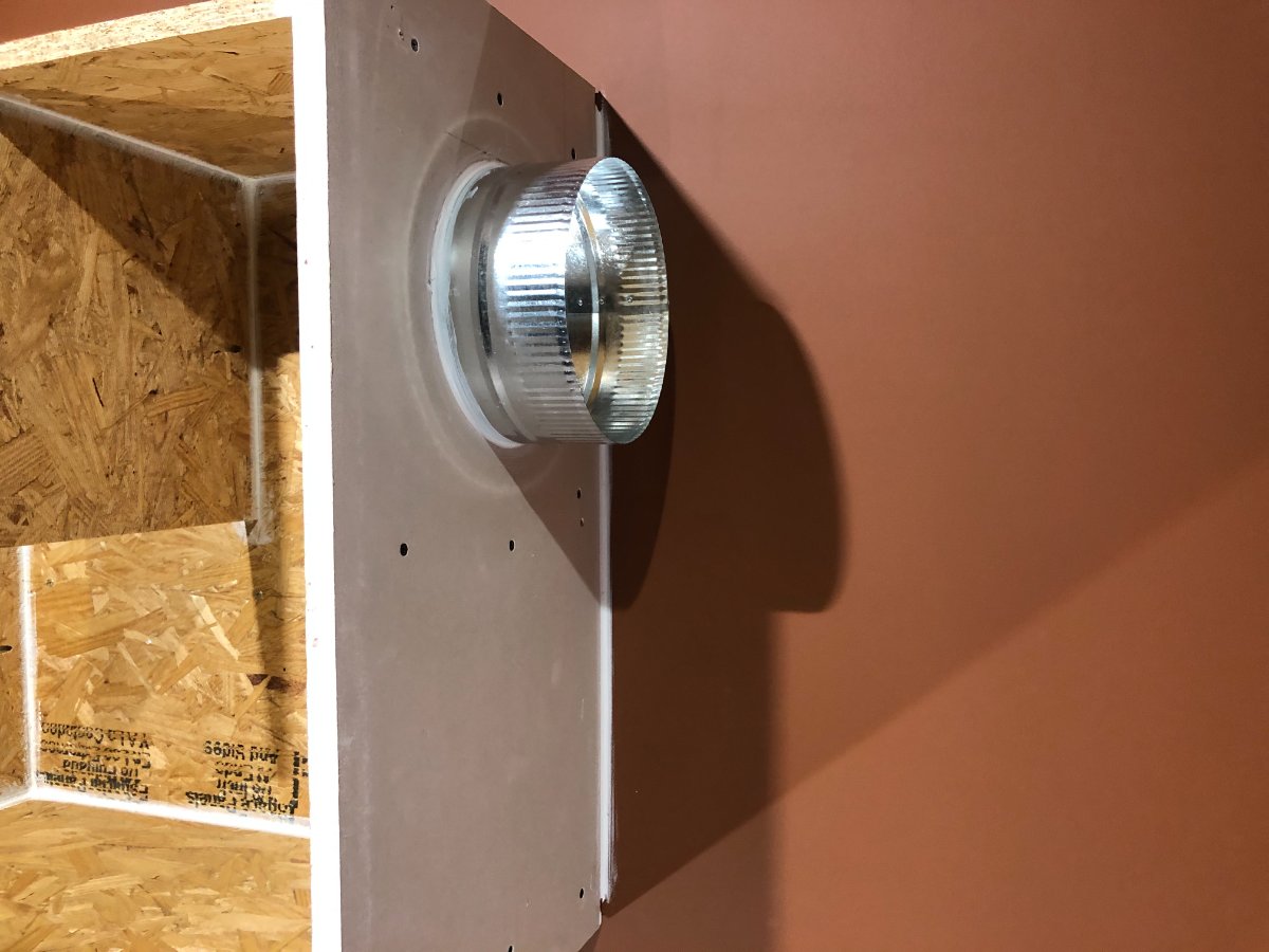 I caulked around the perimeter of the boxes, as well as the back of the box before I pushed it up against the wall, and screwed it in. Then I put added duct connectors to the two openings on each box, and added the top two layers of drywall. The next couple of days I'll be putting the side layers on, putting in the duct liner, and closing the boxes up.