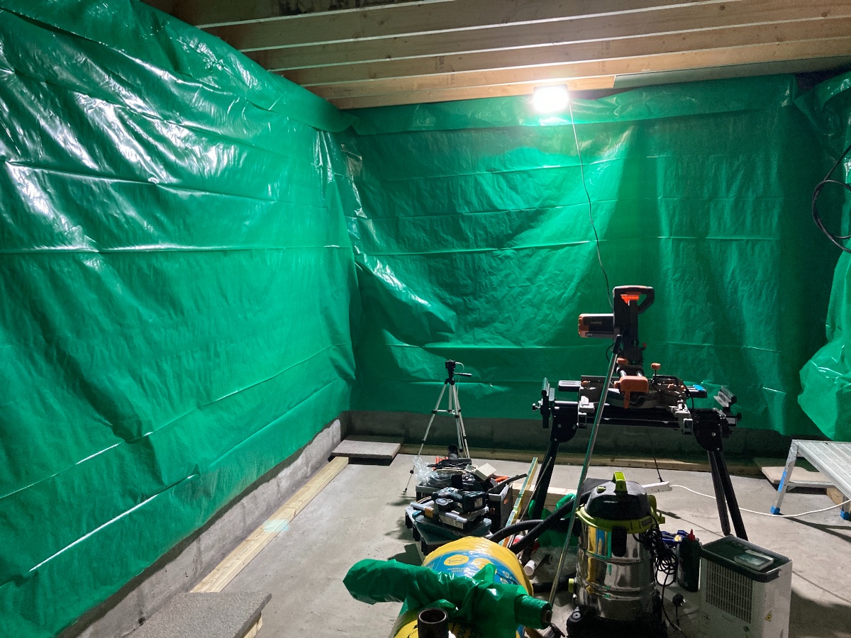 The tanking is dry and the room smells dry too! I’ve been running the extractor fan, an electric radiator and a dehumidifier the last week and it’s definitely worked.