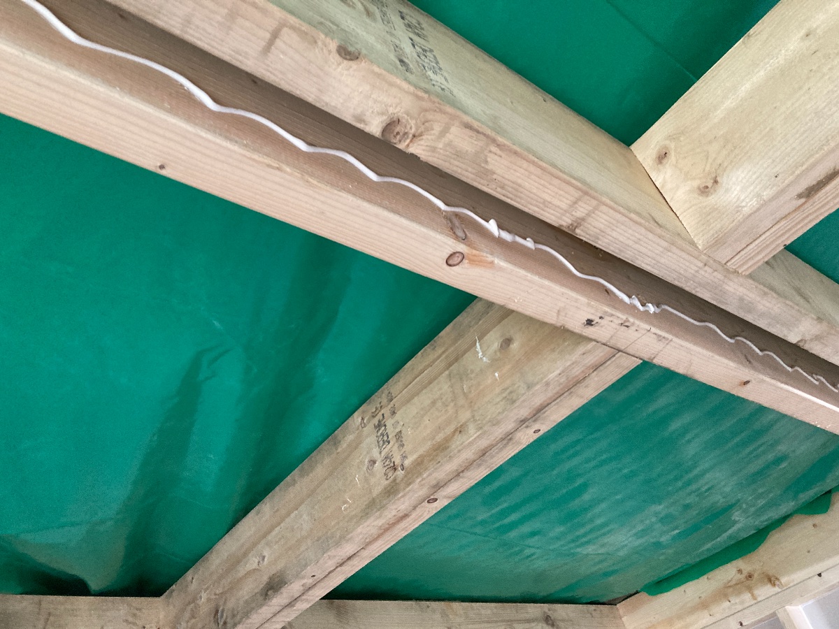 I managed to get the other three made and lifted (with the help of my partner) into place today, with sealant between each pair of joists as they went up.