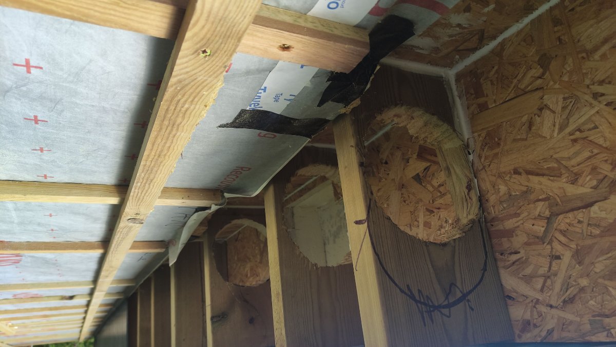 Made a start on installing the inline fan, ducting and grilles. Went with the TD500 in the end as it would just fit above the soffits (with cutting away some of the roof insulation) as you can see it is tight and I was worried about access once the cladding was on but thankfully it worked out ok. Cutting the holes for the ducting in those joists was very hard, not a job I would like to do again, without a Multitool it would have taken far longer; brilliant tool!