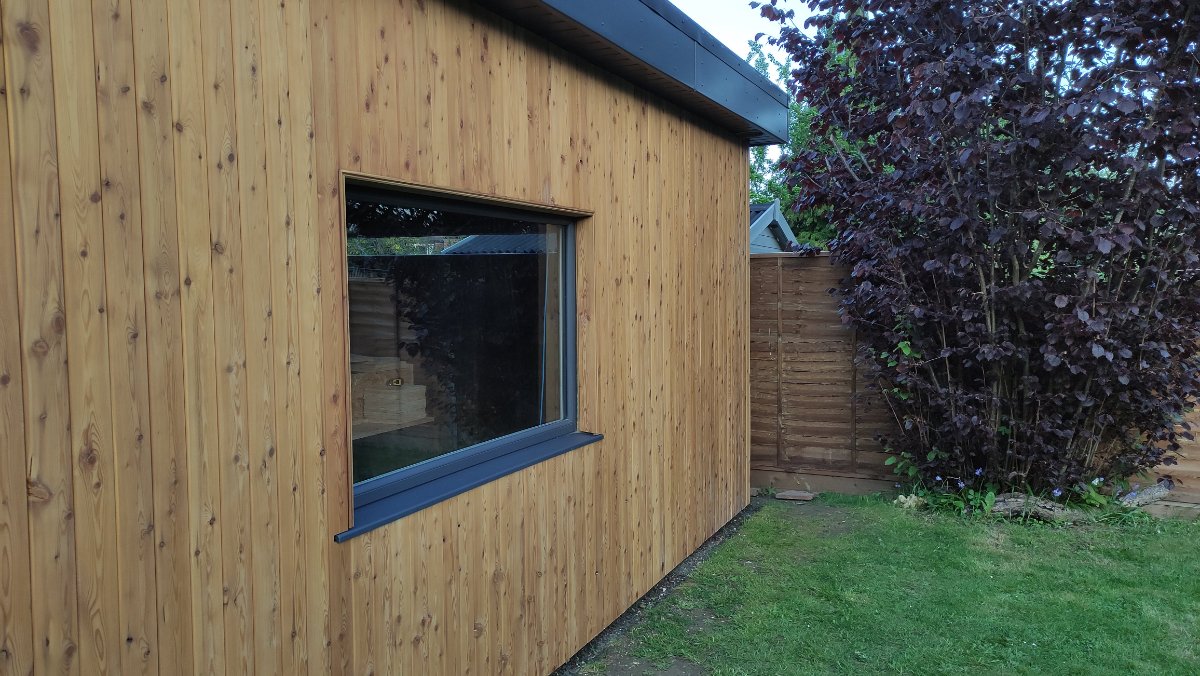 I could move to getting the Siberian Larch cladding installed and the exterior of the studio complete. Once installed I used a product suggested by the cladding supplier (https://www.silvatimber.co.uk/sansin-woodforcetm) that is supposed to protect and help weather the cladding to consistent grey; we shall see.