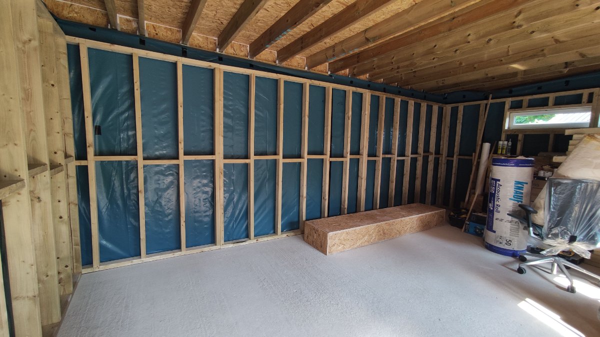 Once I receive the rockwool, I will be placing in between the external roof joists and attaching more moisture barrier holding that in place which will then be joined to the wall DPM to create a complete seal of the room. I'll also be putting insulation in the stud bays above the walls.