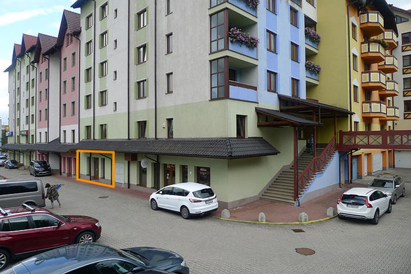 I am not quite sure what it is that I have chosen that you would like me to elaborate on. Here is our room within the building. Because it is built on a slope, this view we call the back of the building where there is one extra storey of commercial premises than you could see at the front. Above us is a row of shops with their front doors on the other side. Behind us is the underground parking area for residents. The road you see is a private car park which needs a remote control to get in, so it is pretty quiet. To our right are the main electric fuseboxes, between us and the shop (that has just closed). On our other side, the pink section, is a shop which in terms of noise spill will be our nearest neighbour, along with the electronics shop above us run by 3 youngish chaps that have music playing all day long - so they probably won't hear us nor would they care too much if they did.