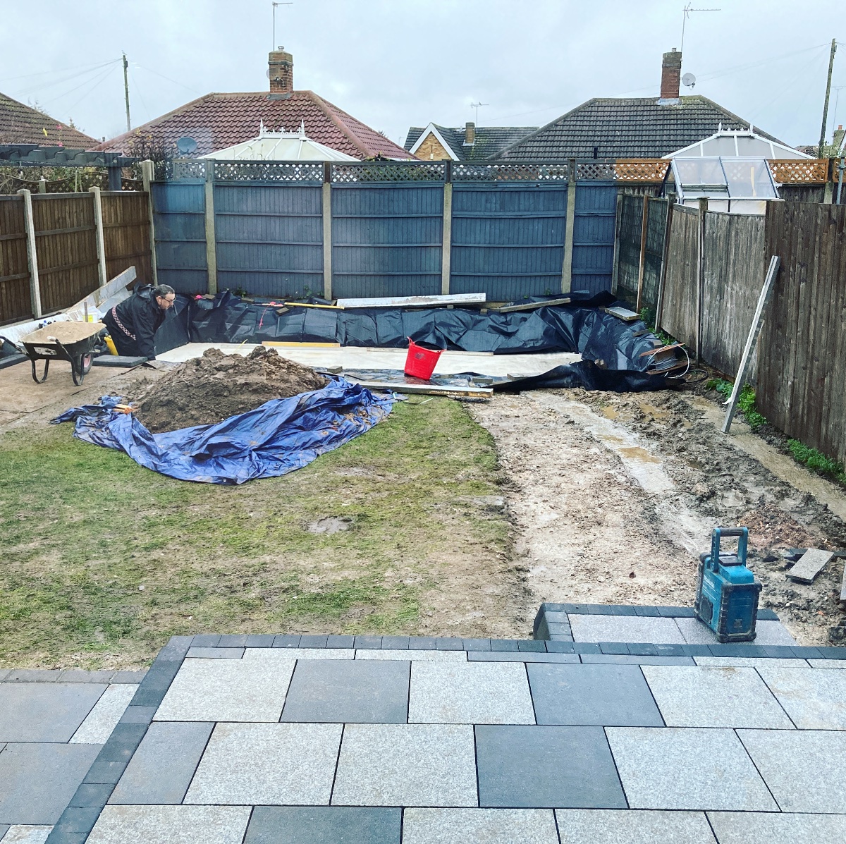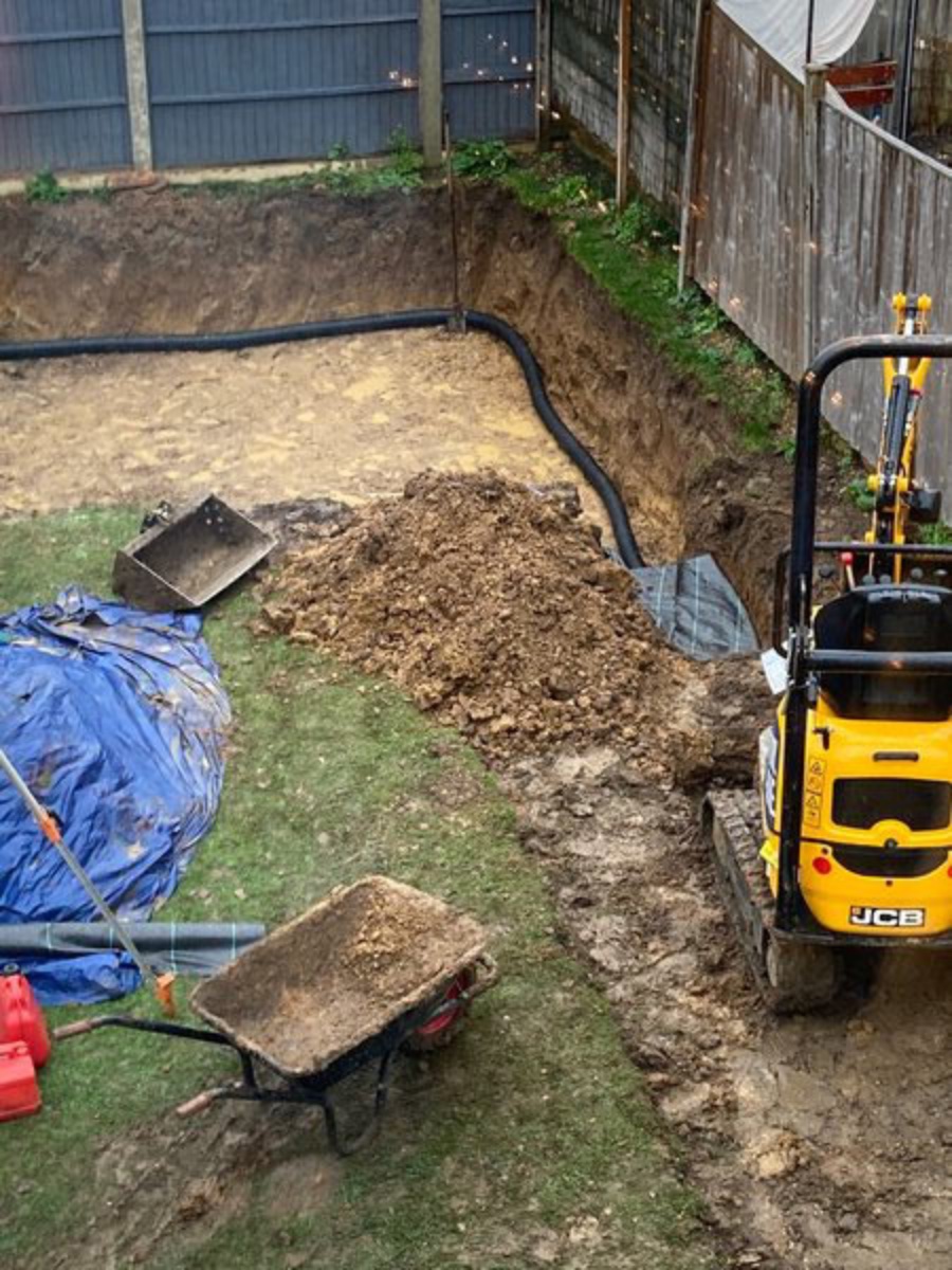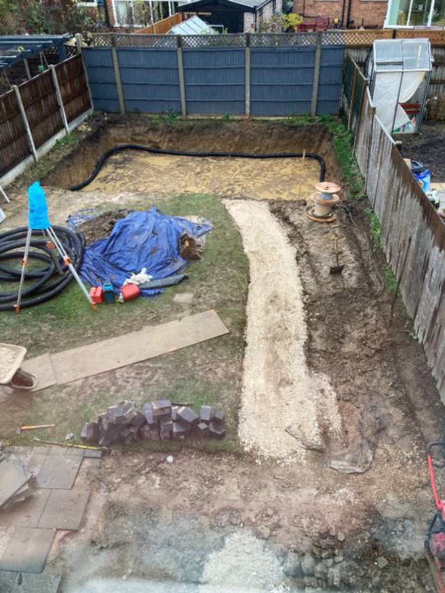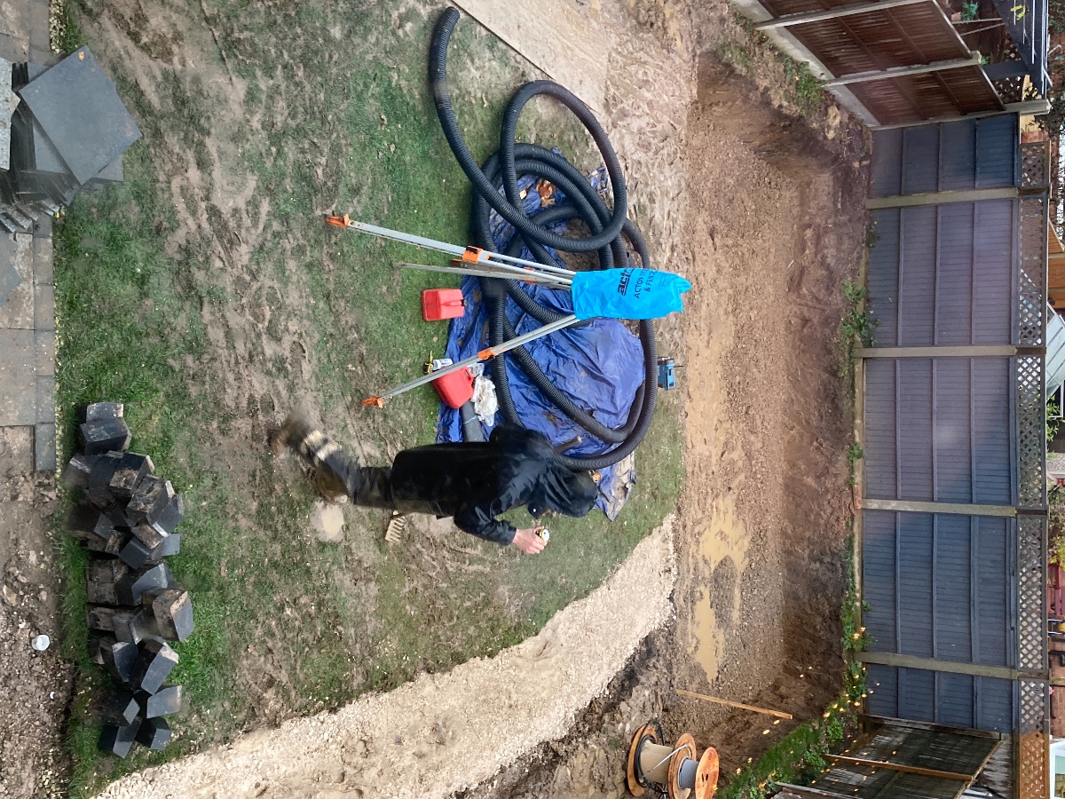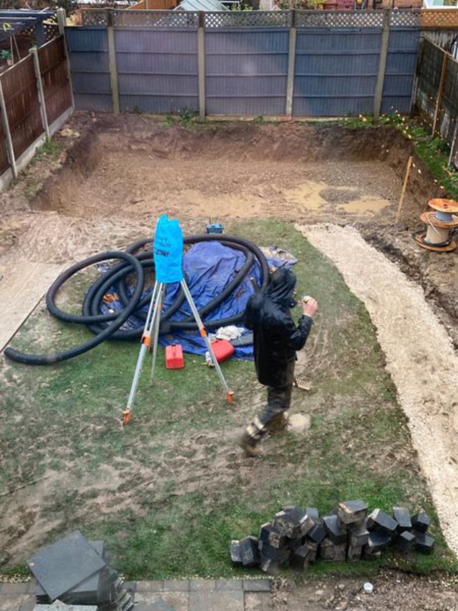 Alongside this they've laid my armoured power and ethernet, raised half the patio and got the ground ready for our raised bed and path to the studio. I'm impressed with what they've achieved in four days.