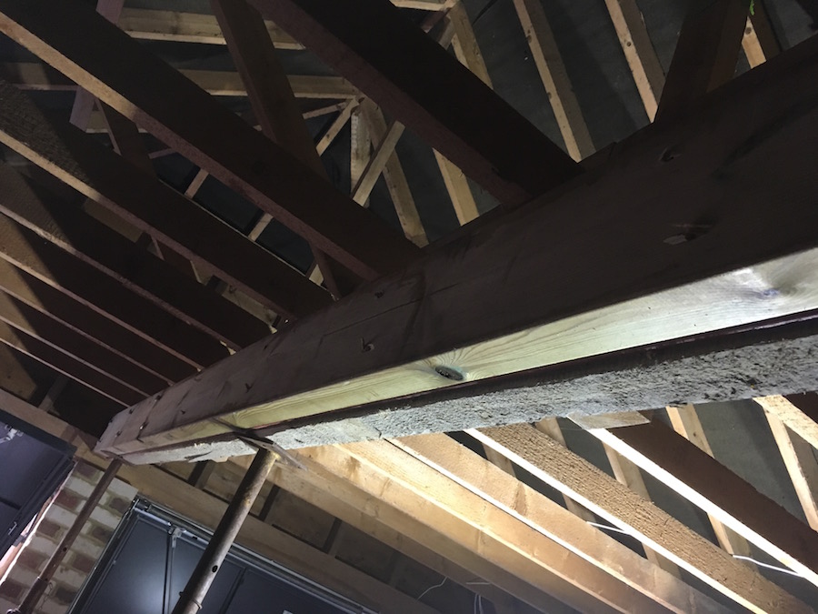 So props were placed under the beam and the packing removed, meanwhile engineering blocks were cut to size and cemented in place.