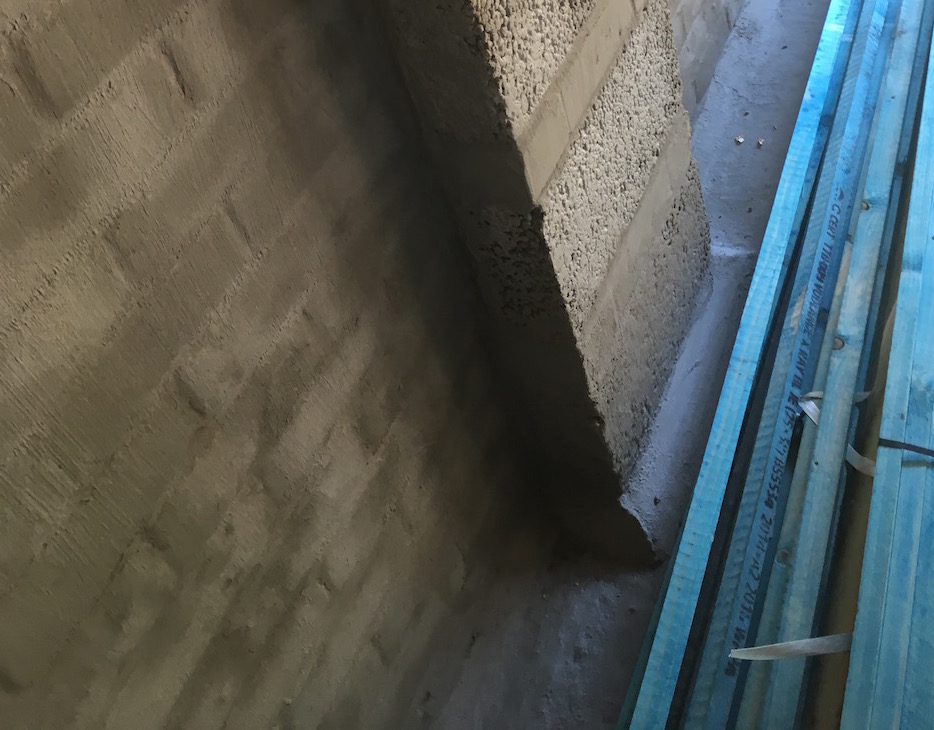 Install 25mm ‘fillet’ (45 degree angled wedge) of mortar 1:4 cement to sharp sand (holme sand) to wall to floor join after initial set of 1st coat (could be end of 1st day).