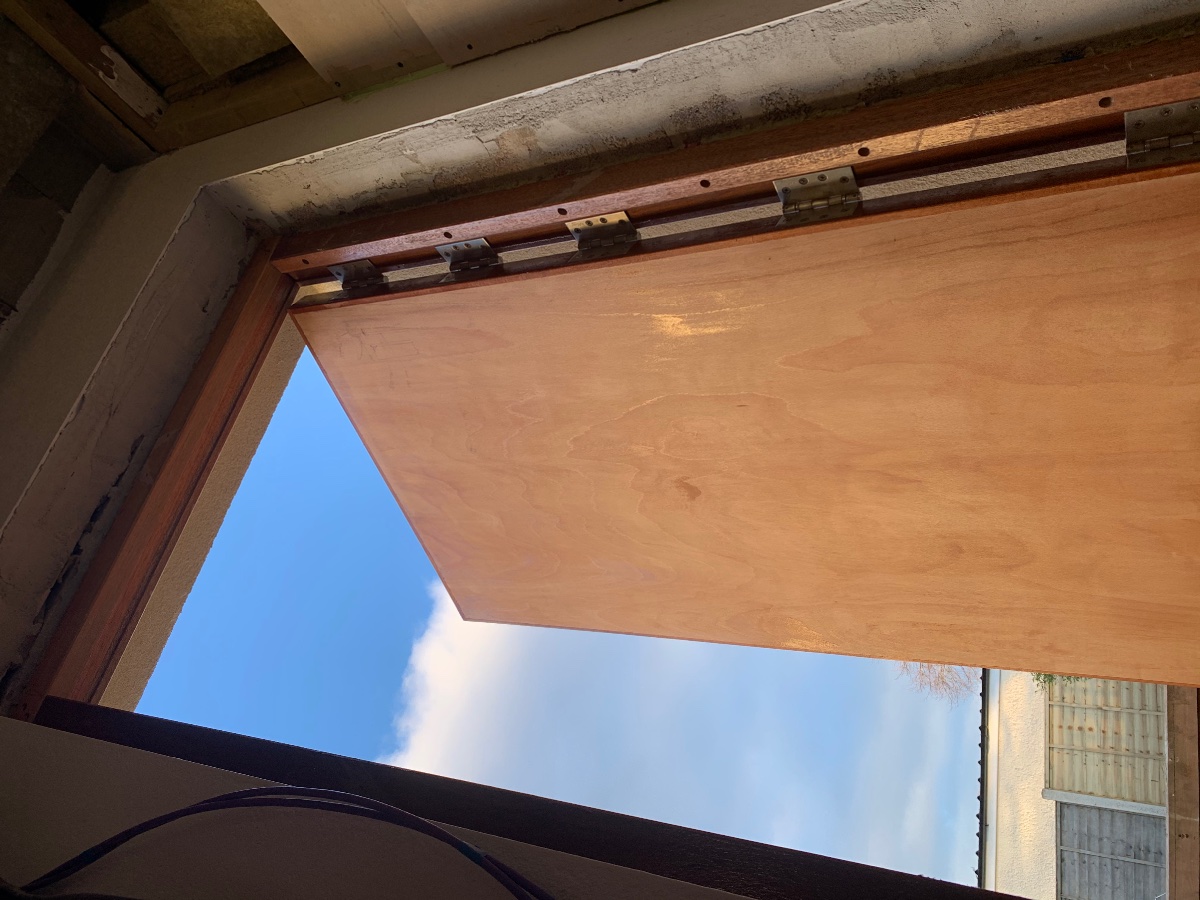We got the steel on the door, beefed up the frame by screwing amd glueing 2x2 Sapele to the existing frame for additional fixing points and for the additional door stops. Also the drop seal fitted well. Just need to fit the seals, final fixing and stops (not in that order, oh amd the door closer. I think I’ll paint it white when the weather’s nice. I’ll look into flood barriers to go in front of the door but I’m fairly confident that we’ll have two sets of seals that are used in flood doors commercially and the door is massive amd stiff enough to take the weight of the water.