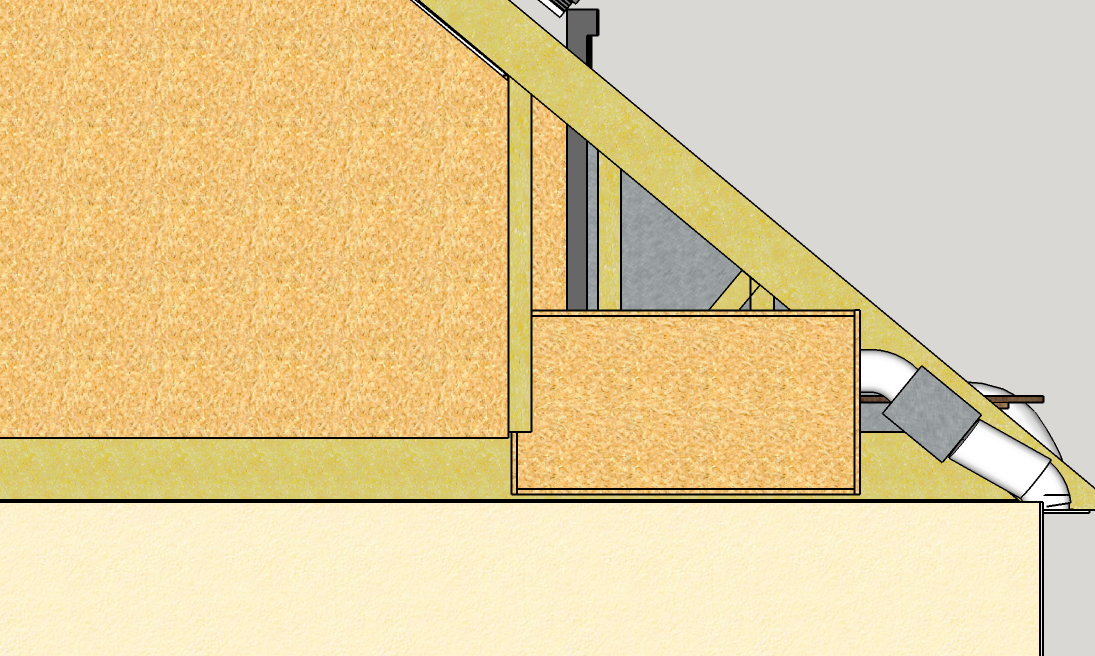 The silencer will be located in the eaves, mounted on and partially between the joists.