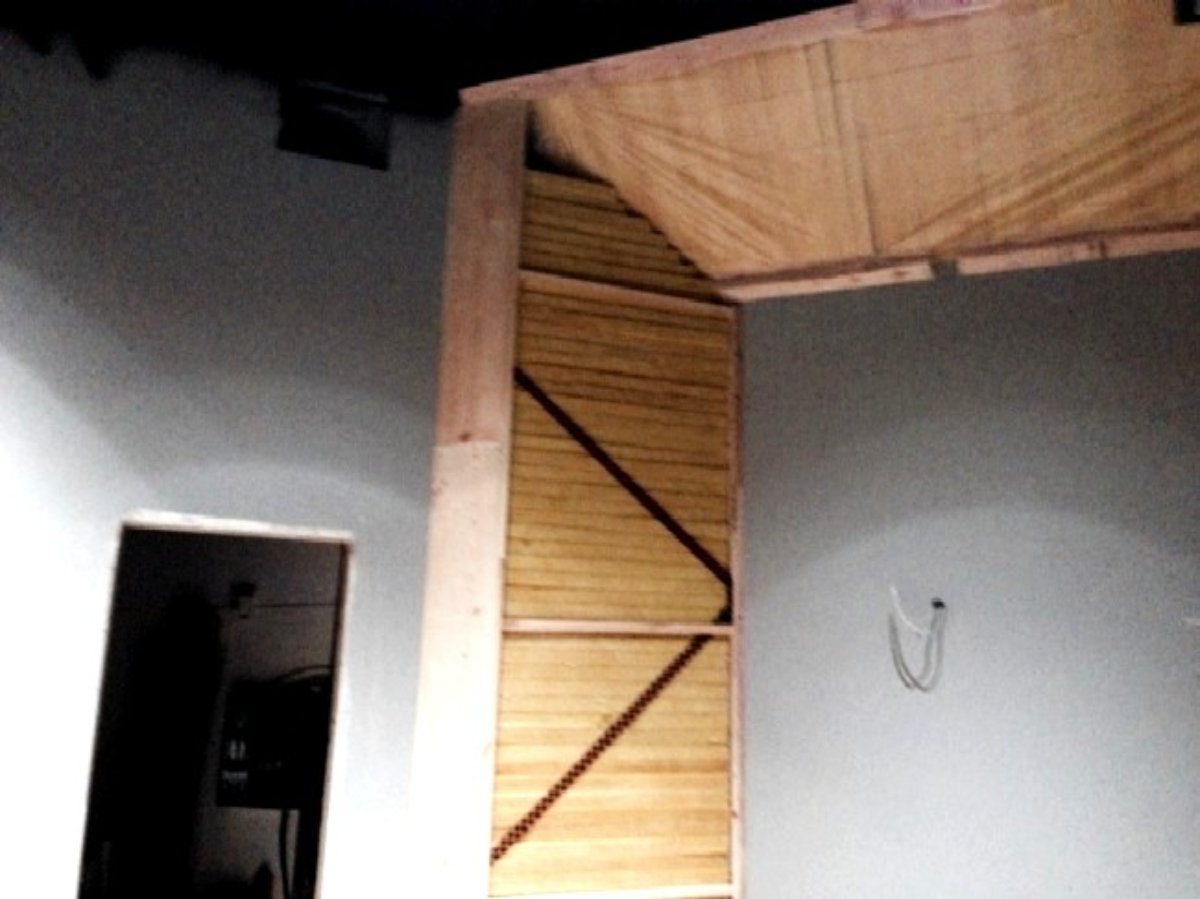 Here's a rough sketch I made for the back wall superchunks going floor to ceiling and also across the top corner meeting in the tri-corners.