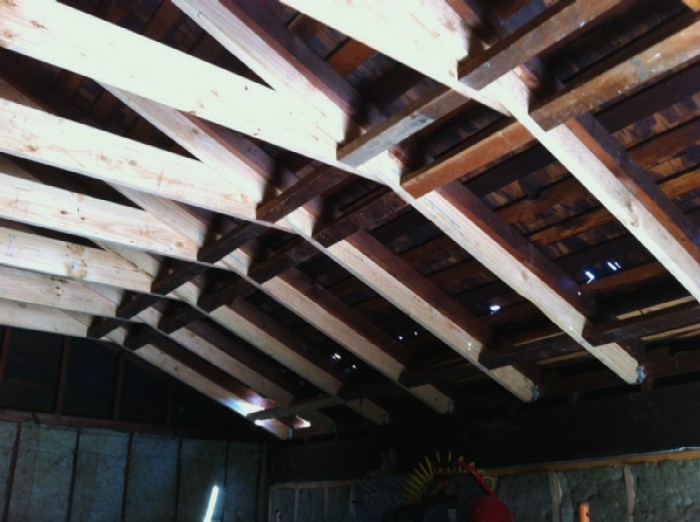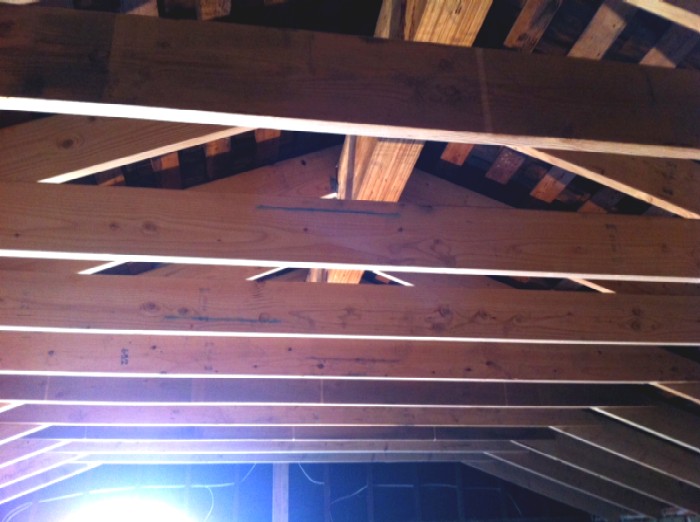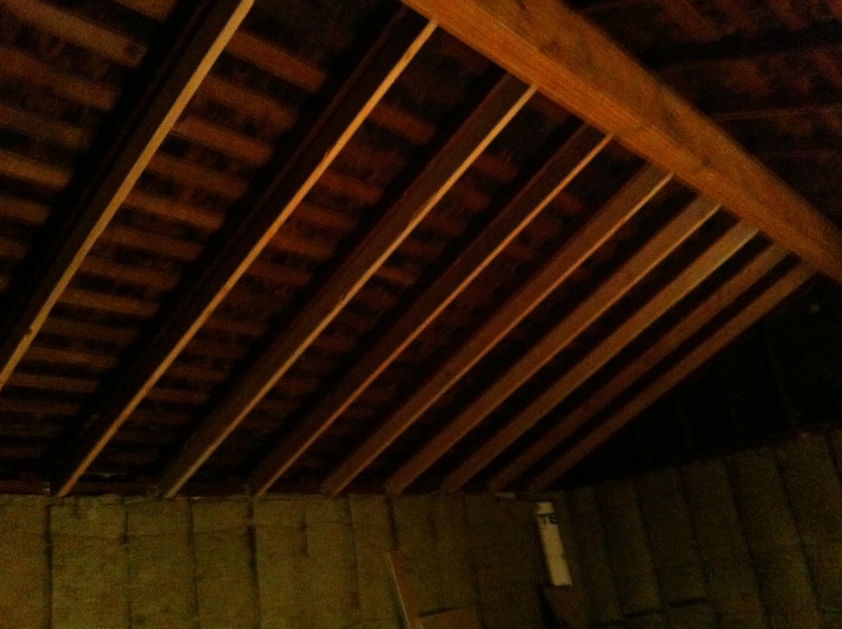 At the rear of the room the ceiling will slope back down (from flat) somewhat due to the hip roof construction. However that slope should only be about 2' at most and that's probably about how deep the bass traps will be at the back, so it shouldn't be a big deal right? See SKP & JPG below for how the main roof of the house sits over the garage: