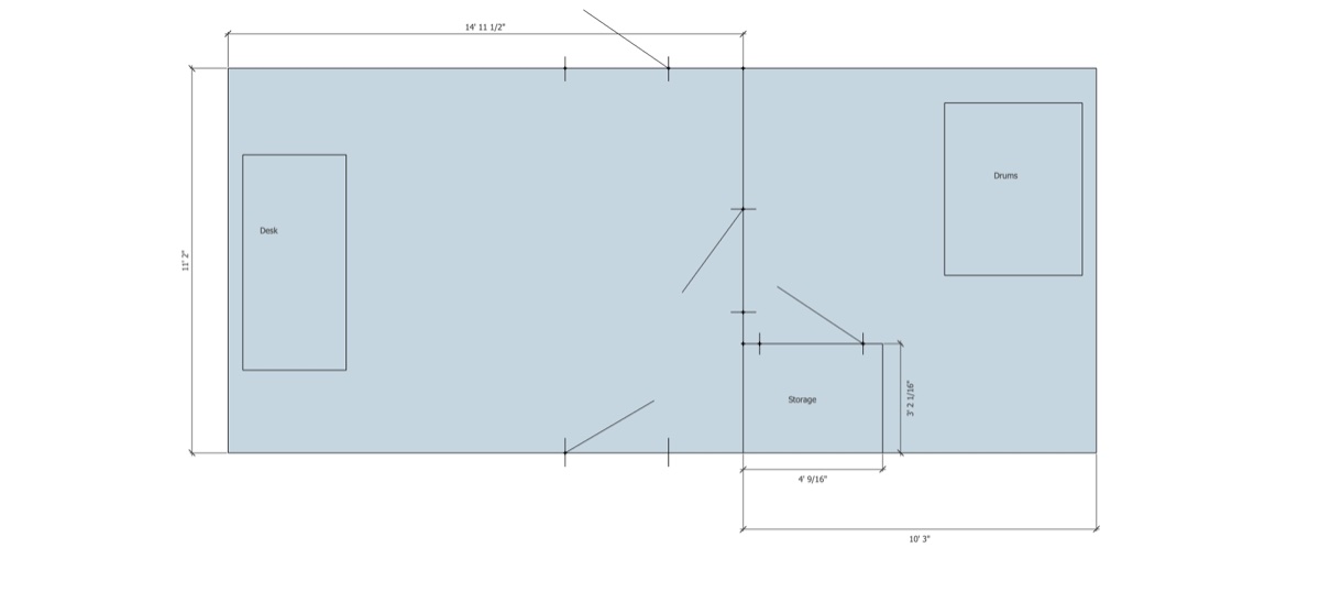 I'm thinking the back wall and front wall of the control room would be standard, since they're going to get thick bass traps in the rear and speaker soffits in the front,