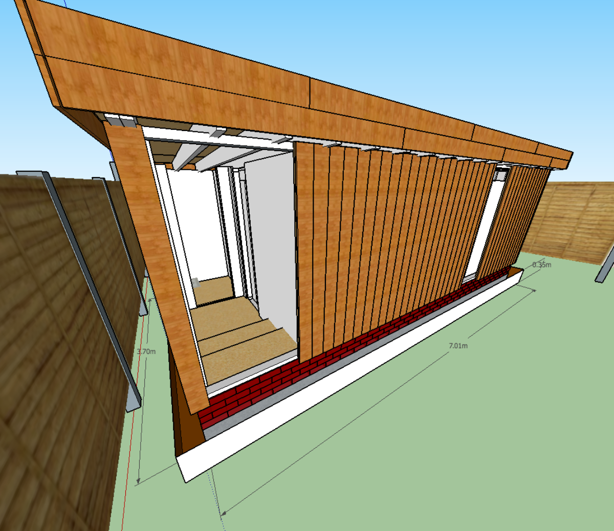 So, on to the questions and detail. At this point I'm interested in planning the construction method and exterior dimensions. I need to get back to the site to do some proper measurements before doing much in sketchup!