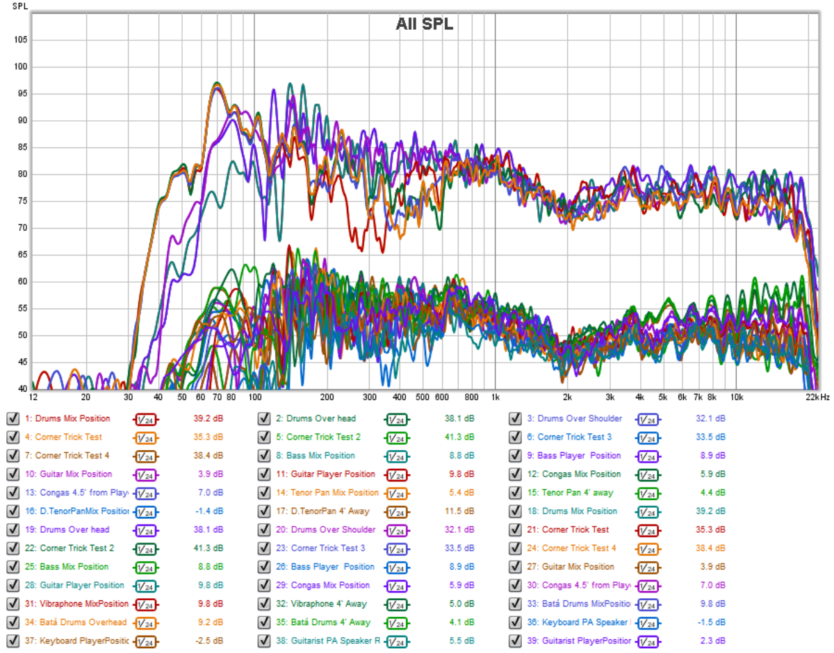 Do you have a good, powerful sub you could use to do that, along with the K12? Something that gets down below 30 Hz? Maybe something you could lborrow form a friend, if you don't have one yourself? You don't need to re-do all of the tests: just a couple of key points, such as the corner-to-corner one, the drum overhead one, and "guitarist PA-R".