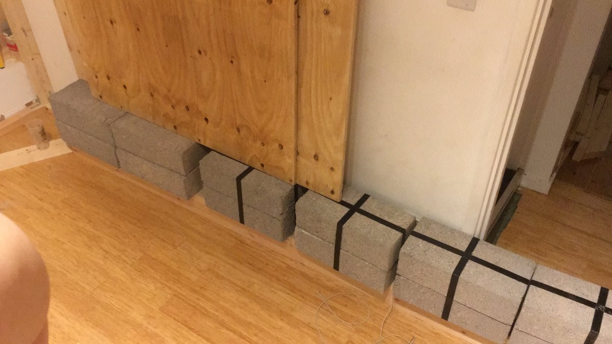 I decided to try pressing my warped timber into shape with a bunch of concrete blocks, but if this doesn't work I'll have to go buy some new timber.