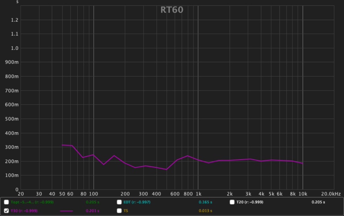 There was a huge hole in the lower midrange reverberation time while in the lows there was a weird rise of about 100ms (!!) with no real improvement anywhere.