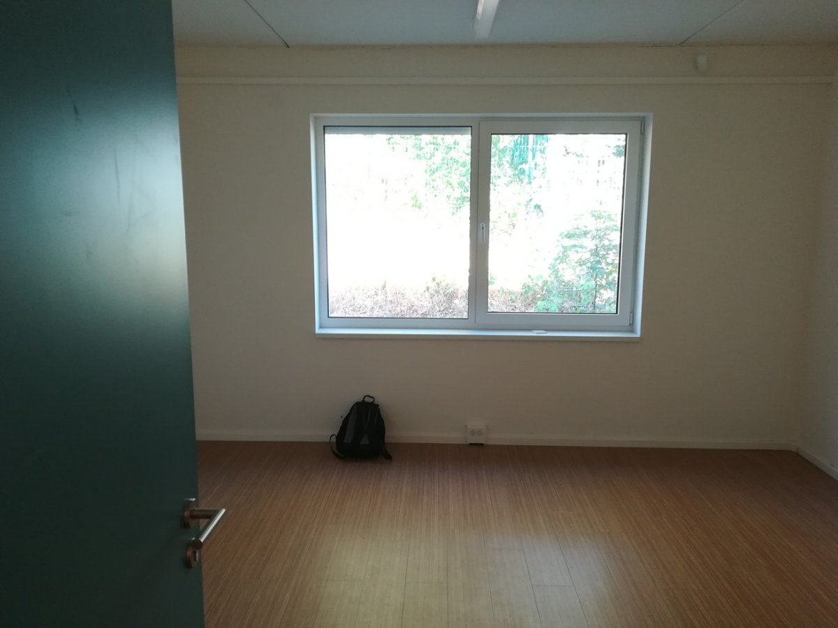 The window is a double sided one, and the right window (viewed from the entrance) is able to be opened. Honestly, I don’t know exactly what kind of glass is used, but it is heavily rigged, 2 leaf insulated as far as I can tell. The room was intended to be a drum rehearsal room, so the owner paid attention to a good insulation to the outside world.