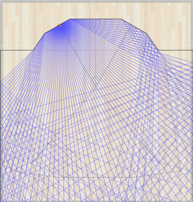I’ve tried that, and it works for R, L and C, but Lr and Rr are still radiating directly to the opposite baffle: Lr is hitting the R baffle and vice versa. I’m kind of limited regarding Lr and Rr: the more I alter the angels (between 130 and 150° seen from the center axis), the more I will get close to the window with the Rr speaker. This will reduce the amount of space that the baffle could have. And because of that, I lose space for treatment in the back. Also, for best ray trace result, there has to be free space between the L and C baffle and the C and R baffle. So, maybe I should use your rounded slats solution. Is there some literature out there about it? I have an Idea how this should work but don’t know the math behind it...