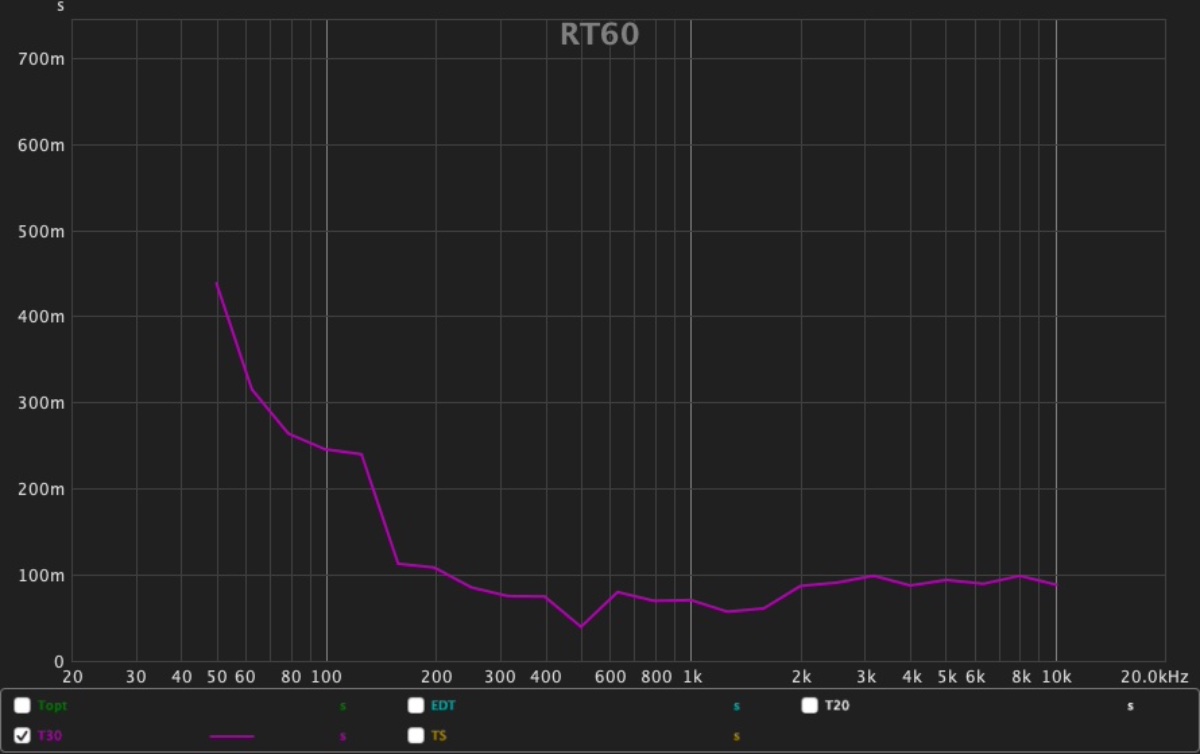 This is more of a semantics issue: For small rooms, the measurements should more correctly be called "decay times", rather than "Reverberation Times". Even though small rooms do not have reverberant fields that decay over time, they still do exhibit just plain old "decay". In other words, the sound levels for each frequency band diminish over time, just as they do in a large room. The issue isn't that decay doesn't occur: clearly, it does! The issue is that, technically, it cannot be called "RT" (Reveberation Time), because there is no statistical reverberation time in small rooms. So what is "decaying" in small rooms is not a true reverberant field: just the sound level. In fact, the final outcome is the same: sound levels decay over time, at different rates! So the issue is really about what to call it, from a technical point of view. The only real difference, from a pure acoustics point of view, is that you can't validly use the statistical analysis tools to analyze what is going on... but you can still use the rest of acosutic theory to understand the issues, and to design treatment for them.I am aware about the invalidity of rt60 in small spaces but rew actually measures rt30 but it still names it rt60. Do all these designers mean t30 also?